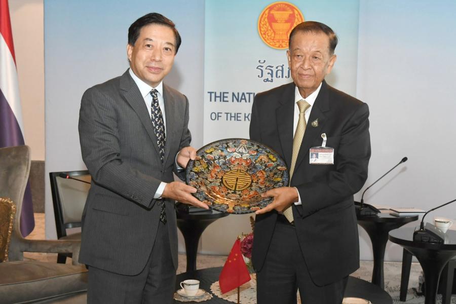 ประธานสภาผู้แทนราษฎร ให้การรับรอง เอกอัครราชทูตสาธารณรัฐประชาชนจีนประจำประเทศไทย ในโอกาสแนะนำตัวและแสดงความยินดีกับตำแหน่งประธานสภาผู้แทนราษฎร