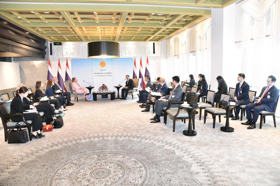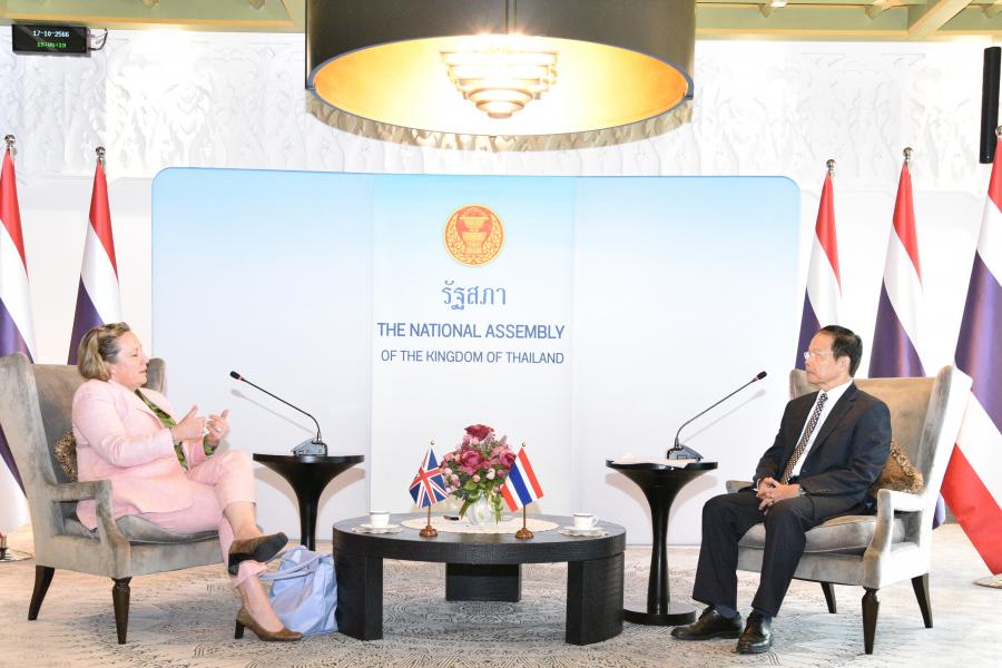 วันอังคารที่ 17 ตุลาคม 2566 เวลา 15.00 นาฬิกา ณ ห้องรับรองพิเศษ 207 ชั้น 2 อาคารรัฐสภา นายนพดล ปัทมะ ประธานคณะกรรมาธิการการต่างประเทศ และคณะกรรมาธิการให้การรับรองรัฐมนตรีช่วยว่าการกระทรวงการต่างประเทศและการพัฒนาฝ่ายกิจการอินโด-แปซิฟิกของสหราชอาณาจักร แอนน์-มารี เทรเวลเลียน (The Rt Hon Anne-Marie Trevelyan) ในโอกาสเยือนประเทศไทยอย่างเป็นทางการ เพื่อเจรจากระชับความสัมพันธ์และความร่วมมือระหว่างทั้ง 2 ประเทศ ทั้งในประเด็นระดับทวิภาคี และระดับภูมิภาค ในส่วนที่ทั้ง 2 ประเทศมีผลประโยชน์ร่วมกัน เช่น สถานการณ์ในฉนวนกาซา ประเทศเมียนมา เป็นต้น ตลอดจนการสนทนาเกี่ยวกับโอกาสที่ทั้ง 2 ประเทศจะร่วมมือกันต่อไปในอนาคตโดยเฉพาะในด้านการค้า ซึ่งทั้ง 2 ประเทศอยู่ระหว่างการเจรจาข้อตกลงเขตการค้าเสรี (FTA)