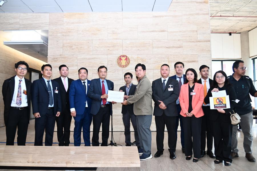 วันพุธที่ 18 ตุลาคม 2566 เวลา 13.20 นาฬิกา ณ จุดรับยื่นหนังสือ ชั้น 1 (โซนกลาง) อาคารรัฐสภา นายอภิชาติ ศิริสุนทร ประธานคณะ กมธ. การที่ดิน ทรัพยากรธรรมชาติและสิ่งแวดล้อมรับยื่นหนังสือจาก ดร.นณณ์ ผาณิตวงศ์ กรรมการสมาคมอนุรักษ์นกและธรรมชาติแห่งประเทศไทย เรื่อง ไม่เห็นด้วยกับการปลดนกปรอดหัวโขนออกจากบัญชีรายชื่อสัตว์ป่าคุ้มครอง จากสถานการณ์ในการดำเนินการเพื่อปลดนกปรอดหัวโขนออกจากบัญชีรายชื่อสัตว์ป่าคุ้มครองที่ผ่านมา มีการมุ่งเน้นนำเสนอเพียงข้อมูลอันเกี่ยวข้องกับการสร้างเม็ดเงินหมุนเวียนมหาศาล ซึ่งเป็นเพียงการเบียดบังสร้างวิบากกรรมให้นกปรอดหัวโขนเท่านั้น มิได้คำนึงถึงคุณค่าด้านในทางนิเวศอันประเมินมูลค่ามิได้ นกปรอดหัวโขนในธรรมชาติซึ่งทำหน้าที่เป็นผู้กระจายเมล็ดพืช ฟื้นฟูพืชในพื้นที่ป่าที่ถูกบุกรุกทำลาย ทั้งยังช่วยควบคุมแมลงศัตรูพืช ถึงแม้จะมีการเลี้ยงนกปรอดหัวโขนจำนวนมาก แต่จากข้อมูลเอกสารทางวิชาการได้ชี้ให้เห็นว่าประชากรในธรรมชาติของนกชนิดนี้กลับสวนทางกับความต้องการเลี้ยงนกที่มีมาก ทั้งยังมีความต้องการในการนำนกชนิดนี้ออกจากบัญชีรายชื่อสัตว์ป่าคุ้มครอง สร้างความกังวลต่อความสามารถในการคุ้มครองนกชนิดนี้เป็นอันมาก ดังนั้นคณะเครือข่ายพันธมิตรต้านสิ่งแวดล้อม ขอเรียกร้องให้หยุดการดำเนินการปลดนกปรอดหัวโชนออกจากบัญชีรายชื่อสัตว์ป่าคุ้มครองทันที ด้วยเหตุผลและข้อเสนอดังนี้ 1. นกปรอดหัวโขนมีความสำคัญต่อระบบนิเวศ และมีจำนวนประชากรซึ่งมีแนวโน้มลดลงจะส่งผลกระทบต่อระบบนิเวศ ซึ่งตรงกับความหมายของ "สัตว์ป่าคุ้มครอง" ตาม พ.ร.บ. สงวนและคุ้มครองสัตว์ป่า พ.ศ. 2562 2. นกปรอดหัวโยนอยู่ในบัญชีสัตว์ป่าคุ้มครองชนิดที่เพาะพันธุ์ได้ ซึ่งเป็นไปตามขั้นตอนการขออนุญาตตามกฎหมาย 3. การพยายามนำนกปรอดหัวโขนออกจากบัญชีสัตว์ป่าคุ้มครอง เป็นการสนับสนุนเพียงมุมมองเชิงเศรษฐกิจด้านเดียว มิได้คำนึงถึงมูลค่าและคุณค่าความสำคัญทางความหลากหลายทางชีวภาพที่เกิดจากนกปรอดหัวโขน 4. การนำนกปรอดหัวโขนออกจากบัญชีสัตว์ป่าคุ้มครอง เป็นการส่งเสริมการ ล่า ดัก จับนก และพรากลูก จากรังโดยใช้เครื่องมือดักนกต่าง " ซึ่งเป็นการสนับสนุนการทำผิดกฎหมายซึ่งได้แอบคำเนินการอยู่ในขณะนี้ 5. การนำนกปรอดหัวโขนออกจากบัญชีสัตว์ป่าคุ้มครองสร้างความกังวลว่า จะนำไปสู่การขอนำสัตว์ป่าคุ้มครองชนิดอื่น ๆ ออกจากบัญชีต่อไป ซึ่งจะกระทบวงจรชีวิตสัตว์ป่าอื่น ในธรรมชาติตามห่วงโซ่อาหารและ ภาคบริการระบบนิเวศที่เกิดขึ้น