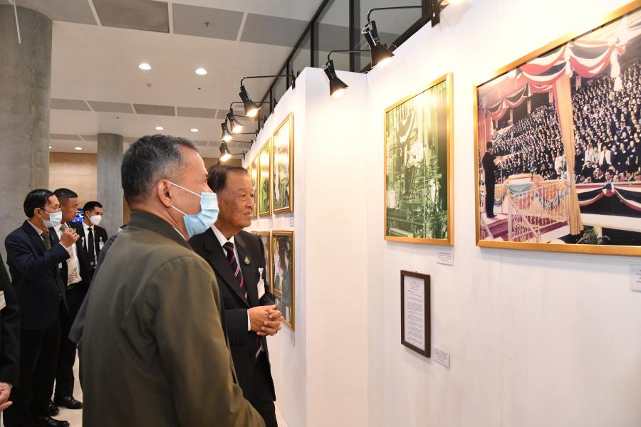 วันพฤหัสบดีที่ 19 ตุลาคม 2566 เวลา 15.00 นาฬิกา ณ บริเวณห้องโถง ชั้น 1 อาคารรัฐสภา นายวันมูหะมัดนอร์ มะทา ประธานสภาผู้แทนราษฎร พร้อมด้วยนายคัมภีร์ ดิษฐากรณ์ โฆษกประธานสภาผู้แทนราษฎร และคณะทำงานทางการเมืองของประธานสภาผู้แทนราษฎร ร่วมชมการจัดแสดงนิทรรศการ รัฐสภาน้อมศิระกรานวันนวมินทรมหาราช ซึ่งเป็นนิทรรศการเกี่ยวกับพระราชกรณียกิจอันโดดเด่นของพระบาทสมเด็จพระบรมชนกาธิเบศร มหาภูมิพลอดุลยเดชมหาราช บรมนาถบพิตร เพื่อวางรากฐานการพัฒนาประเทศให้มีความเจริญก้าวหน้าอย่างมั่นคง จัดโดยสำนักวิชาการ ตามดำริของประธานสภาผู้แทนราษฎร เพื่อน้อมรำลึกในพระมหากรุณาธิคุณและพระเกียรติคุณในฐานะองค์กรฝ่ายนิติบัญญัติ โดยได้นำภาพพระราชกรณียกิจที่เก็บรักษาไว้ที่พิพิธภัณฑ์รัฐสภา ออกมาจัดแสดงนิทรรศการในช่วงวันนวมินทรมหาราช ระหว่างวันที่13 - 30 ต.ค. 66 โอกาสนี้ นายมาณิช อินทฉิม ผู้อำนวยการสำนักวิชาการ และบุคลากรสำนักวิชาการ ร่วมให้การต้อนรับ
