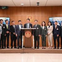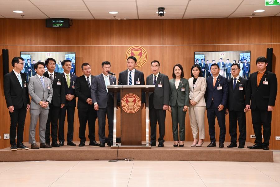 วันพฤหัสบดีที่ 26 ตุลาคม 2566 เวลา 11.00 นาฬิกา ณ ห้องแถลงข่าว ชั้น 1 อาคารรัฐสภา นายจักรัตน์ พั้วช่วย ประธานคณะ กมธ. การบริหารจัดการทรัพยากรน้ำ และคณะกมธ. แถลงข่าวฝากสื่อมวลชนไปยังพี่น้องประชาชน หากมีปัญหาเกี่ยวกับน้ำ สามารถแจ้งมายังกมธ. ได้ ซึ่งคณะกมธ. ชุดนี้ เดิมคือคณะ กมธ. แก้ไขราคาผลิตผลเกษตรกรรม แต่เมื่อสัปดาห์ที่ผ่านมามีการแก้ไขระเบียบฯ เปลี่ยนภารกิจจากเดิมมาเป็นภารกิจใหม่ และเปลี่ยนชื่อเป็น คณะ กมธ. การบริหารจัดการทรัพยากรน้ำ ซึ่งเป็นคณะ กมธ. สามัญ คณะเดียวที่เกี่ยวกับการบริหารจัดการน้ำ วันนี้จึงอยากใช้โอกาสนี้ชี้แจ้งไปยังสื่อมวลชนว่า คณะ กมธ. ต้องการสื่อสารให้ประชาชนทราบว่าหากมีปัญหาเรื่องเกี่ยวกับน้ำ ไม่ว่าจะเป็นน้ำอุปโภคบริโภค น้ำเพื่อการเกษตร น้ำท่วม น้ำแล้ง สามารถแจ้งมายัง คณะ กมธ. ได้ เพื่อนำปัญหาเข้าสู่ การแก้ไขในชั้น กมธ. คณะ กมธ. มีความเป็นห่วงพี่น้องเกษตรกร เนื่องจากก่อนหน้านี้กังวลว่าเกษตรกรจะไม่มีน้ำใช้ แต่ 2 - 3 สัปดาห์ที่ผ่านมา อาจจะเป็นความโชคดีที่มีพายุหลายลูกเข้ามาในประเทศหลายลูก ทำให้อ่างเก็บน้ำ ที่เป็นห่วงว่าจะไม่มีน้ำ มีความจุน้ำเกินปริมาณที่จะใช้ในการอุปโภคบริโภคแล้ว จึงอยากให้หน่วยงานที่เกี่ยวข้องได้เร่งปล่อยน้ำให้เกษตรกรได้ทำการเกษตรกรรมต่อไป ฝากพี่น้องสื่อมวลชนเป็นช่องทางการสื่อสารไปยังพี่น้องประชาชนว่า แม้เป็นคณะ กมธ. แต่ภารกิจค่อนข้างหนัก และเชื่อว่าหากทำงานได้อย่างมีประสิทธิภาพ จะสามารถแก้ไขและบรรเทาปัญหาการบริหารจัดการน้ำได้ในอนาคต