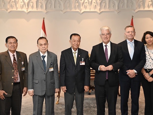 วันพฤหัสบดีที่ 9 พฤศจิกายน 2566 เวลา 14.00 นาฬิกา ณ ห้องรับรองพิเศษ 205 ชั้น 2 อาคารรัฐสภา นายวันมูหะมัดนอร์ มะทา ประธานสภาผู้แทนราษฎร ให้การรับรอง H.E. Mr. Ernst Wolfgang Reichel (นายแอ็นสท์ ว็อล์ฟกัง ไรเซิล) เอกอัครราชทูตสหพันธ์สาธารณรัฐเยอรมนีประจำประเทศไทย โดยมี นายคัมภีร์ ดิษฐากรณ์ โฆษกประธานสภาผู้แทนราษฎร นายมุข สุไลมาน เลขานุการประธานสภาผู้แทนราษฎร นายธงชาติ รัตนวิชา ผู้ช่วยเลขานุการประธานสภาผู้แทนราษฎร นายสุธีรพันธ์ สุขวุฒิชัย ที่ปรึกษาคณะทำงานทางการเมืองของประธานสภาผู้แทนราษฎร ว่าที่ ร.ต.ต.อาพัทธ์ สุขะนันท์ รองเลขาธิการสภาผู้แทนราษฎร รักษาราชการแทนเลขาธิการสภาผู้แทนราษฎร และนายอาพล นันทขว้าง ผู้อำนวยการสำนักความสัมพันธ์ระหว่างประเทศ ร่วมให้การรับรอง