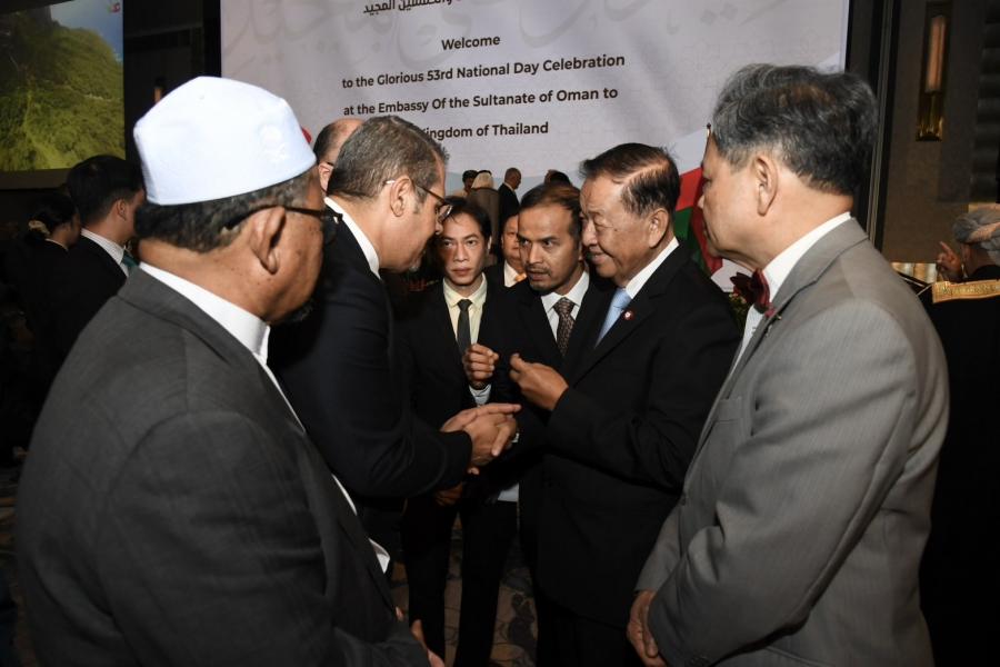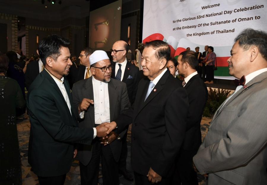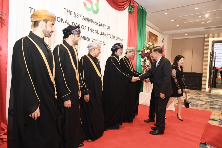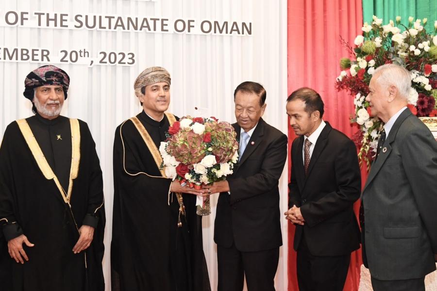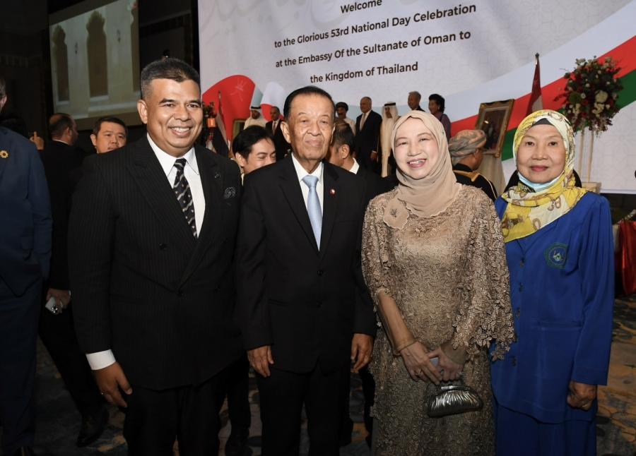 เมื่อวันจันทร์ที่ 20 พฤศจิกายน 2566 เวลา 18.30 นาฬิกา ณ ห้องแกรนด์บอลรูม โรงแรมอินเตอร์คอนติเนนตัล กรุงเทพฯ นายวันมูหะมัดนอร์ มะทา ประธานสภาผู้แทนราษฎร พร้อมด้วย นายอารีเพ็ญ อุตรสินธุ์ ที่ปรึกษาประธานสภาผู้แทนราษฎร และนายมุข สุไลมาน เลขานุการประธานสภาผู้แทนราษฎร เข้าร่วมงานเลี้ยงเฉลิมฉลองเนื่องในโอกาสวันชาติรัฐสุลต่านโอมาน เพื่อแสดงความยินดีในโอกาสดังกล่าว ตามคำเชิญของ นายอิสซา อับดุลเลาะห์ ญาบิร อัลอาลาวี (H.E. Issa Abdullah Jaber Al Alawi) เอกอัครราชทูตรัฐสุลต่านโอมานประจำประเทศไทย ในโอกาสนี้ ประธานสภาผู้แทนราษฎรได้มอบแจกันดอกไม้และขึ้นกล่าวอวยพรในฐานะแขกกิตติมศักดิ์