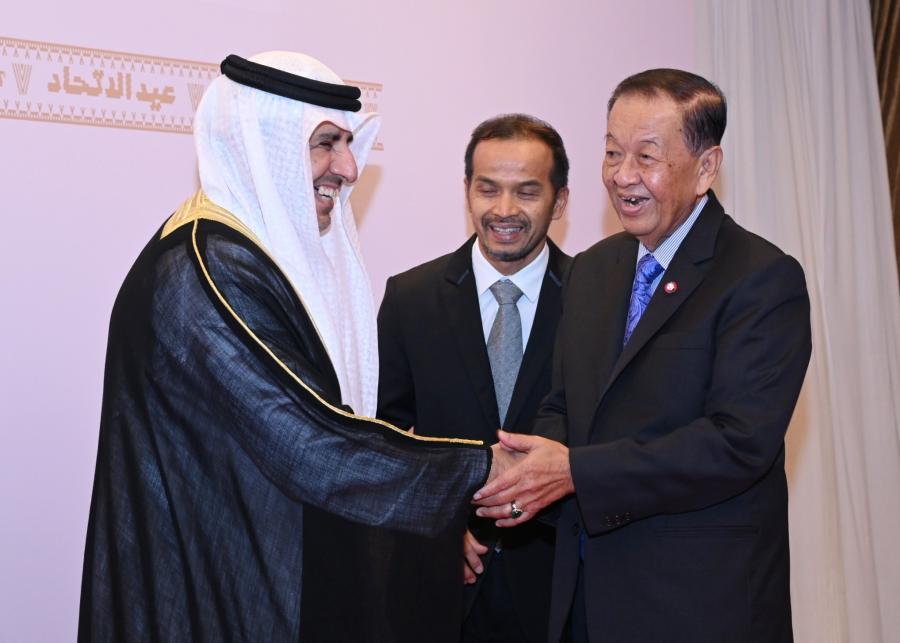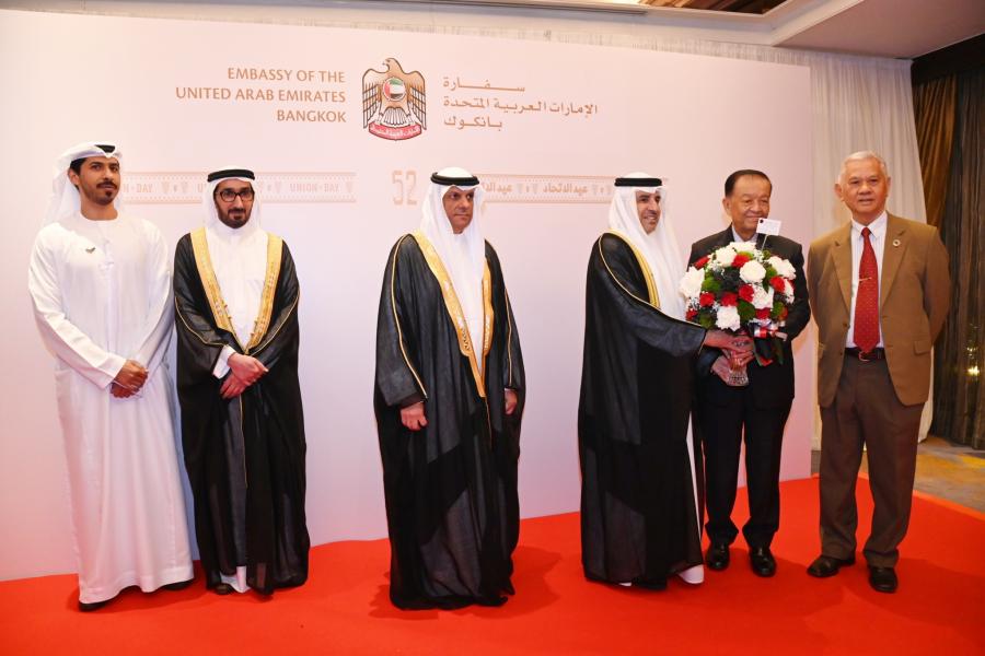 เมื่อวันพุธที่ 22 พฤศจิกายน 2566 เวลา 18.30 นาฬิกา ณ ห้องแกรนด์บอลรูม โรงแรมแชงกรี-ลา กรุงเทพฯ นายวันมูหะมัดนอร์ มะทา ประธานรัฐสภา และประธานสภาผู้แทนราษฎร เข้าร่วมงานเฉลิมฉลองครบรอบ 52 ปี วันชาติสหรัฐอาหรับเอมิเรตส์ ในการนี้ ได้มอบแจกันดอกไม้เพื่อแสดงความยินดีแก่ H.E. Mr. Obaid Saeed Obaid Bintaresh Aldhaheri เอกอัครราชทูตสหรัฐอาหรับเอมิเรตส์ประจำประเทศไทย พร้อมทั้งกล่าวสุนทรพจน์อวยพร โดยมีใจความสำคัญว่า ประเทศไทยและสหรัฐอาหรับเอมิเรตส์ มีความสัมพันธ์อันดีร่วมกันกว่า 48 ปี มีบันทึกข้อตกลงต่าง ๆ ร่วมกันครอบคลุมในหลายมิติ อาทิ ด้านสาธารณสุข เศรษฐกิจ แรงงาน และเทคโนโลยี และยังมีการเจรจาเพื่อจัดทำความตกลงหุ้นส่วนทางเศรษฐกิจ (Comprehensive Economic Partnership agreement: CEPA) สหรัฐอาหรับเอมิเรตส์เป็นคู่ค้าอันดับหนึ่งด้านพลังงานของประเทศไทย รวมทั้ง ยังมีการส่งเสริมการท่องเที่ยว การค้า และการลงทุน หวังว่าความสัมพันธ์ระหว่างรัฐสภาไทยกับรัฐสภาแห่งสหรัฐอาหรับเอมิเรตส์ จะก่อให้เกิดความร่วมมือในทุกมิติ และขอพระเจ้าอำนวยพรให้ ประมุขแห่งรัฐ ตลอดจนประชาชนชาวสหรัฐอาหรับเอมิเรตส์ประสบความสุข ความสำเร็จ รุ่งเรืองสืบไป