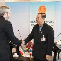 ประธานรัฐสภากล่าวต้อนรับด้วยความยินดี พร้อมทั้งชื่นชมความสัมพันธ์อันแน่นแฟ้นระหว่างสองประเทศที่มีมาอย่างยาวนานเป็นเวลากว่า 400 ปี โดยมีความผูกพันและใกล้ชิดกันทั้งในระดับ พระบรมวงศานุวงศ์ รัฐบาล รัฐสภา และระดับประชาชน สืบเนื่องจากชาวอิหร่านได้มาตั้งรกราก และรับราชการในราชสำนักไทยจนได้รับแต่งตั้งเป็นเจ้าพระยาบวรราชนายก และเป็นจุฬาราชมนตรีคนแรกของประเทศไทย ซึ่งถือว่าเป็นบุคคลสำคัญของไทยมาจนปัจจุบัน ทั้งนี้ ความสัมพันธ์ของสองประเทศครอบคลุมทั้งในด้านการทูต เศรษฐกิจ การค้า และการลงทุน ด้านความสัมพันธ์ระหว่างรัฐสภา เมื่อครั้งที่ประธานรัฐสภาดำรงตำแหน่งประธานรัฐสภาครั้งแรก ในปี 2540ได้มีโอกาสเดินทางเยือนอิหร่านอย่างเป็นทางการ ซึ่งได้รับการต้อนรับเป็นอย่างดี และได้พบปะกับผู้นำอิหร่าน รวมถึงประธานรัฐสภาด้วย และต่อมาประธานรัฐสภาอิหร่านได้เดินทางเยือนประเทศไทยอย่างเป็นทางการเช่นกัน โดยประธานรัฐสภาได้นำประธานรัฐสภาอิหร่านเข้าเฝ้าฯ พระบาทสมเด็จพระบรมชนกาธิเบศรมหาภูมิพลอดุลยเดชมหาราช บรมนาถบพิตร นับเป็นความประทับใจจนถึงปัจจุบัน รัฐมนตรีช่วยว่าการกระทรวงการต่างประเทศฯ กล่าวขอบคุณประธานรัฐสภาที่ให้การต้อนรับอย่างอบอุ่น และได้แสดงความยินดีกับตำแหน่งประธานรัฐสภา ซึ่งเป็นตำแหน่งสำคัญของประเทศ เป็นที่ชัดเจนว่าความสัมพันธ์ระหว่างสองประเทศมีความแน่นแฟ้น และมีมิตรภาพที่ดีต่อกันมาเป็นระยะเวลาอันยาวนาน ทั้งสองฝ่ายมีการหารือประเด็นที่สนใจร่วมกัน ก่อให้เกิดความร่วมมือในหลาย ๆ ด้าน ทั้งด้านเศรษฐกิจ การค้า และการลงทุน อีกทั้งอิหร่านและไทยสามารถขยายความสัมพันธ์ด้านรัฐสภาได้ โดยผ่านช่องทางกลุ่มมิตรภาพสมาชิกรัฐสภาของทั้งสองฝ่าย รวมถึงกรรมาธิการด้านต่างประเทศ ตลอดจนการพบปะหารือระหว่างผู้นำของสองประเทศ อันจะนำมาซึ่งการแลกเปลี่ยนการเยือนในระดับต่าง ๆ ต่อไป