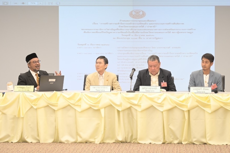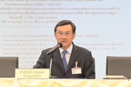| วันพุธที่ 6 ธันวาคม 2566 เวลา 09.30 นาฬิกา ณ ห้องประชุม 607 ชั้น 6 อาคารรัฐสภา นายจาตุรนต์ ฉายแสง ประธานคณะ กมธ.วิสามัญเพื่อพิจารณาศึกษาและเสนอแนวทางการส่งเสริมกระบวนการสร้างสันติภาพเพื่อแก้ไขปัญหาความขัดแย้งในพื้นที่สามจังหวัดชายแดนภาคใต้ เป็นประธานในพิธีเปิดการประชุมและสัมมนาเรื่อง การสร้างความเข้าใจรากเหง้าความขัดแย้งและกระบวนการสร้างสันติภาพจังหวัดชายแดนภาคใต้/ปาตานี จากนั้น เป็นการพิจารณาเรื่อง การสร้างความเข้าใจรากเหง้าความขัดแย้งและกระบวนการสร้างสันติภาพจังหวัดชายแดนภาคใต้/ปาตานี โดยเชิญผู้ทรงคุณวุฒิมาให้ข้อมูล ประกอบด้วย ศ.ธเนศ อาภรณ์สุวรรณ และศ.มารค ตามไท สำหรับในภาคบ่าย จะเป็นการอภิปรายในหัวข้อ โจทย์สำคัญของเราในการสร้างสันติภาพ และการระดมความคิดเห็นในประเด็นสำคัญที่ต้องพิจารณาศึกษา |