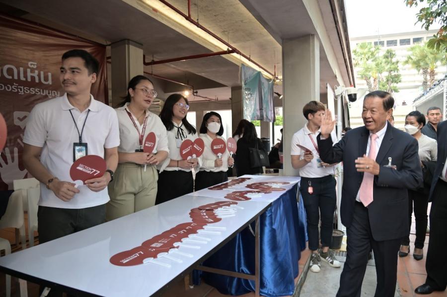 วันอาทิตย์ที่ 10 ธันวาคม 2566 เวลา 17.00 นาฬิกา ณ ลานประชาชน นายวันมูหะมัดนอร์ มะทา ประธานรัฐสภา พร้อมด้วย สมาชิกสภาผู้แทนราษฎร และคณะผู้บริหารสำนักงานฯ เยี่ยมชมการออกบูทนิทรรศการต่าง ๆ ที่จัดแสดงในงานวันฉลองรัฐธรรมนูญ ประจำปี 2566 "ร่วมก้าวย่างบนเส้นทางประชาธิปไตย สู่เส้นชัยแห่งรัฐธรรมนูญ ขณะที่นายณัฐชา บุญไชยอินสวัสดิ์ สส.พรรคก้าวไกล ร่วมกิจกรรมถามคำถามเกี่ยวกับรัฐสภา กมธ. เพื่อสร้างความสนุกสนาน และให้ความรู้แก่ผู้ร่วมงาน