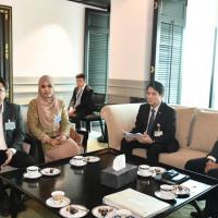 | วันจันทร์ที่ 18 ธันวาคม 2566 เวลา 15.00 นาฬิกา ณ ห้องประชุมประธานรัฐสภา ชั้น 10 อาคารรัฐสภา นายวันมูหะมัดนอร์ มะทา ประธานรัฐสภา ให้การต้อนรับนายศุภณัฐ เพิ่มพูนวิวัฒน์ ผู้อำนวยการสำนักสันติวิธีและธรรมาภิบาล สถาบันพระปกเกล้า พร้อมด้วย นายรุ่งโรจน์ ซาลลี ประธาน PSC Thailand (Palestine Solidarity Campaign Thailand) นายไฟโรส อยู่เป็นสุข กรรมการ PSC Thailand และคณะ ในโอกาสเข้าพบเพื่อรายงานสรุปผลการเสวนางานประจำปี International Day of Solidarity with Palestinian People ซึ่งจัดโดย PSC Thailand มีจุดมุ่งหมายเพื่อให้ความรู้แก่สาธารณชนเกี่ยวกับคำถามของปาเลสไตน์ที่ยังไม่ได้รับการแก้ไข สนับสนุนการยุติความขัดแย้งระหว่างอิสราเอลและปาเลสไตน์อย่างสันติ เมื่อวันอังคารที่ 28 พ.ย. ที่ผ่านมา โอกาสนี้ นายคัมภีร์ ดิษฐากรณ์ โฆษกประธานสภาผู้แทนราษฎร ร่วมให้การต้อนรับ |