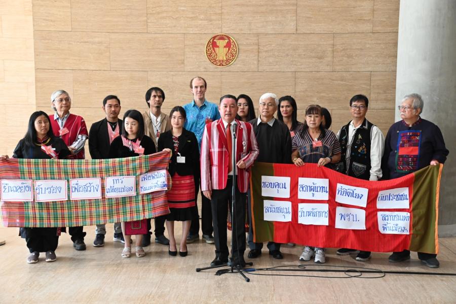 วันอังคารที่ 19 ธันวาคม 2566 เวลา 09.00 นาฬิกา ณ จุดรับยื่นหนังสือ ชั้น 1 (โซนกลาง) อาคารรัฐสภา นายมานพ คีรีภูวดล สส.พรรคก้าวไกล พร้อมด้วย นายศักดิ์ดา แสนมี่ เลขาธิการสภาชนเผ่าพื้นเมืองแห่งประเทศไทย และภาคีองค์กร ตลอดจนเครือข่ายภาคประชาชนที่ร่วมเสนอร่าง พ.ร.บ.สภาชนเผ่าพื้นเมืองแห่งประเทศไทย พ.ศ. .... แถลงข่าวขอบคุณประธานสภาผู้แทนราษฎร รองประธานสภาผู้แทนราษฎร คนที่หนึ่ง และรองประธานสภาผู้แทนราษฎร คนที่สอง ที่ทำหน้าที่ประธานการประชุมสภาผู้แทนราษฎร และดำเนินการให้ สส. ได้มีการอภิปรายอย่างกว้างขวาง โดยส่วนใหญ่สนับสนุนร่าง พ.ร.บ. ดังกล่าว จึงขอแสดงความขอบคุณเป็นอย่างสูงมา ณ โอกาสนี้ อย่างไรก็ตาม สภาชนเผ่าพื้นเมืองฯ และภาคีฯ ยังมีความกังวลว่า หากกระบวนการพิจารณาร่างกฎหมายมีความล่าช้าจะเป็นการเสียโอกาสของประเทศไทยทำให้ขาดเครื่องมือที่เป็นหลักประกันในการปกป้องคุ้มครองวิถีชีวิตชนเผ่าพื้นเมืองทุกกลุ่มชาติพันธุ์ ทั้งนี้ ทางคณะขอยืนยันว่ามีความพร้อมที่จะเสนอรายชื่อบุคคลที่เป็นผู้เชี่ยวชาญและมีความเหมาะสมไปเป็น กมธ.พิจารณาร่าง พ.ร.บ.ฉบับนี้ในวาระต่อไปแล้ว และหวังเป็นอย่างยิ่งว่า กฎหมายฉบับนี้จะเป็นเครื่องมือสำคัญในการส่งเสริมสิทธิชนเผ่าพื้นเมือง ผลักดันให้รัฐบาลยอมรับการมีตัวตนของชนเผ่าพื้นเมือง และรัฐมีเครื่องมือและมาตรการคุ้มครองวิถีชีวิตชนเผ่าพื้นเมือง ซึ่งจะเป็นการส่งเสริมการอยู่ร่วมกันในสังคมพหุวัฒนธรรมและสนับสนุนให้มีการจัดการพื้นที่คุ้มครองวิถีชีวิตชนเผ่าพื้นเมืองได้เกิดขึ้นอย่างแท้จริง
