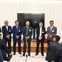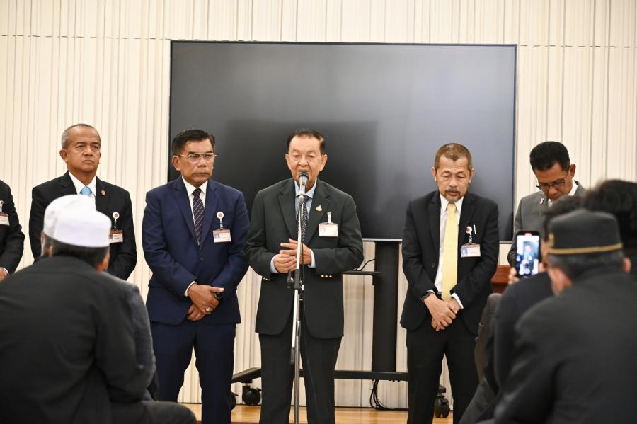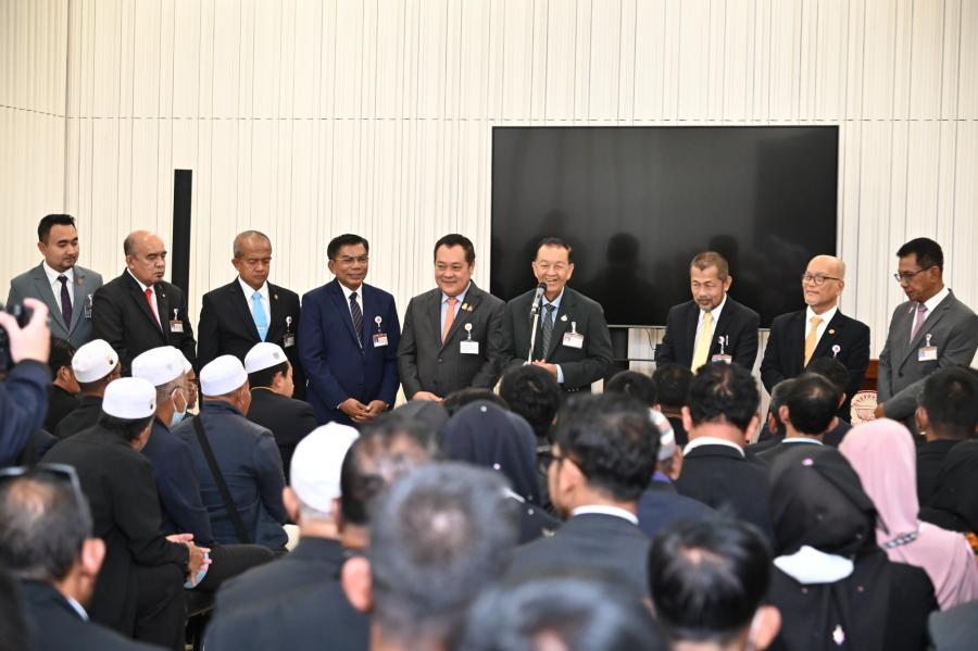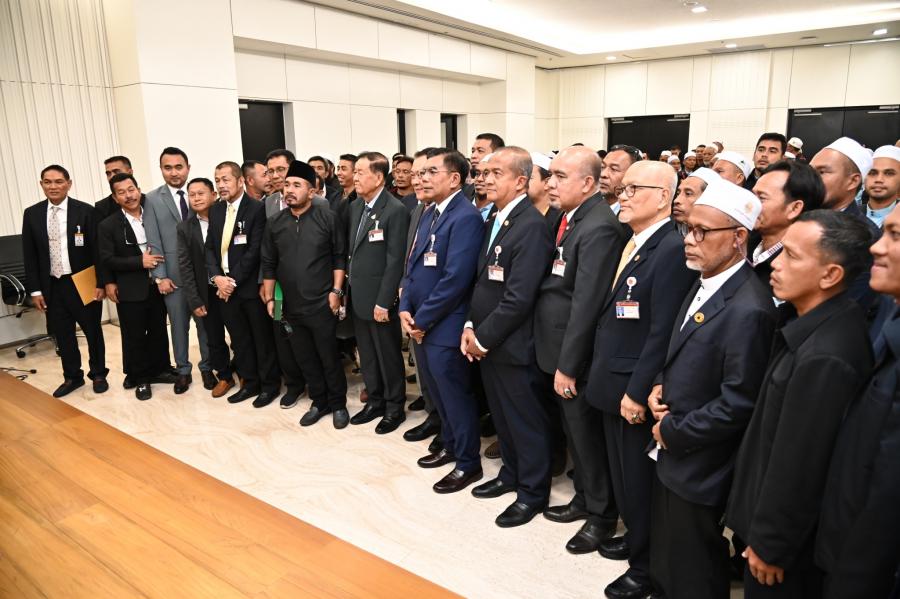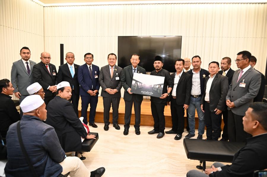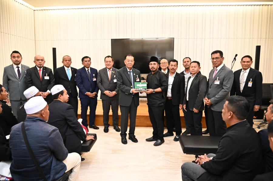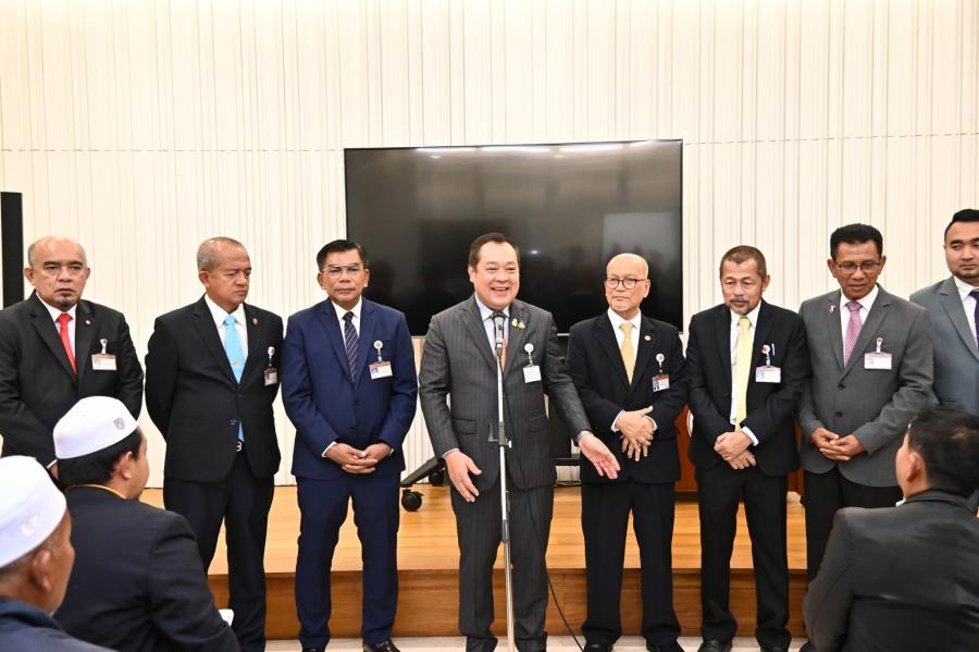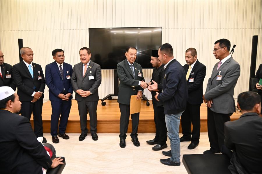 วันพฤหัสบดีที่ 21 ธันวาคม 2566 เวลา 12.30 นาฬิกา ณ ห้องบรรยายใหญ่ B1 - 1 ชั้น B1 อาคารรัฐสภา นายวันมูหะมัดนอร์ มะทา ประธานรัฐสภา ให้การต้อนรับคณะผู้เข้าร่วมโครงการฝึกอบรมเชิงปฏิบัติการผู้นำศาสนาและทัศนศึกษาดูงานโครงการฝึกอบรมศักยภาพและศึกษาดูงานผู้นำองค์กรชุมชนเพื่อสร้างความเข้มแข็งให้กับท้องถิ่นในยุคไทยแลนด์ 4.0 ประจำปี พ.ศ. 2567 จากองค์การบริหารส่วนตำบลบันนังสตา อำเภอบันนังสตา จังหวัดยะลา ในโอกาสเข้าศึกษาดูงานและเยี่ยมชมรัฐสภา โดยมี พ.ต.อ.ทวี สอดส่อง รมว.ยุติธรรม พร้อมด้วย สส.พรรคประชาชาติ ร่วมให้การต้อนรับ