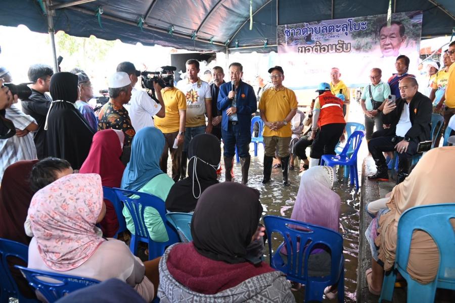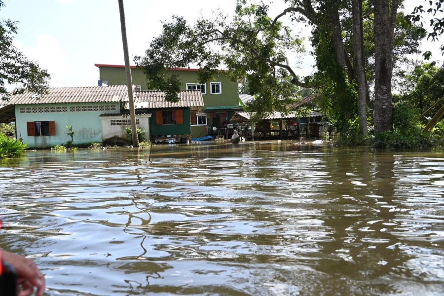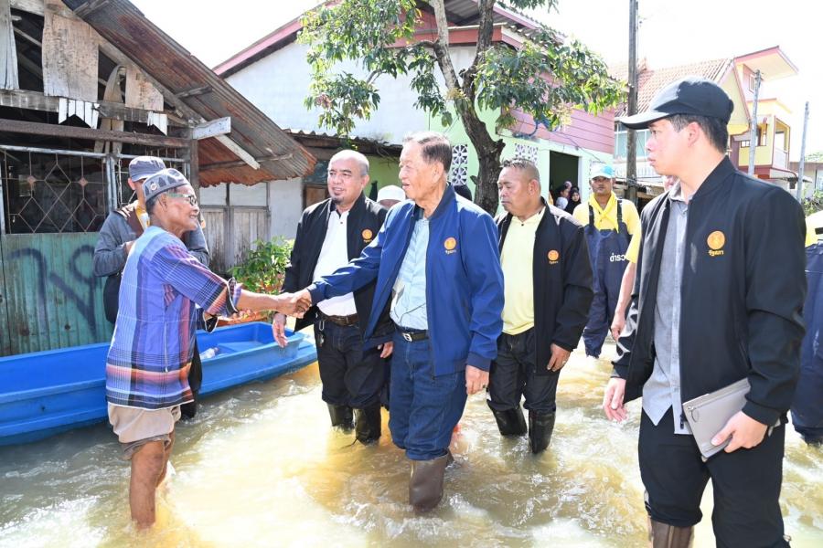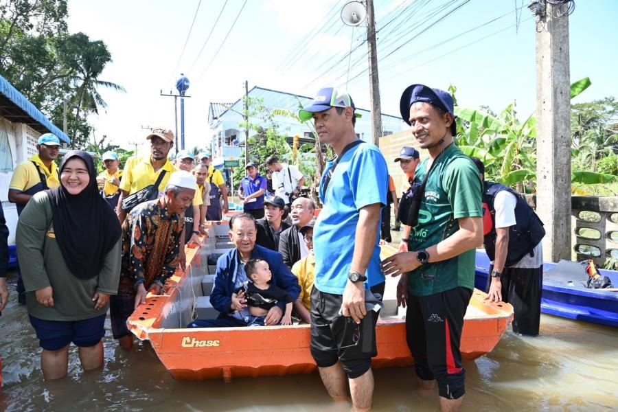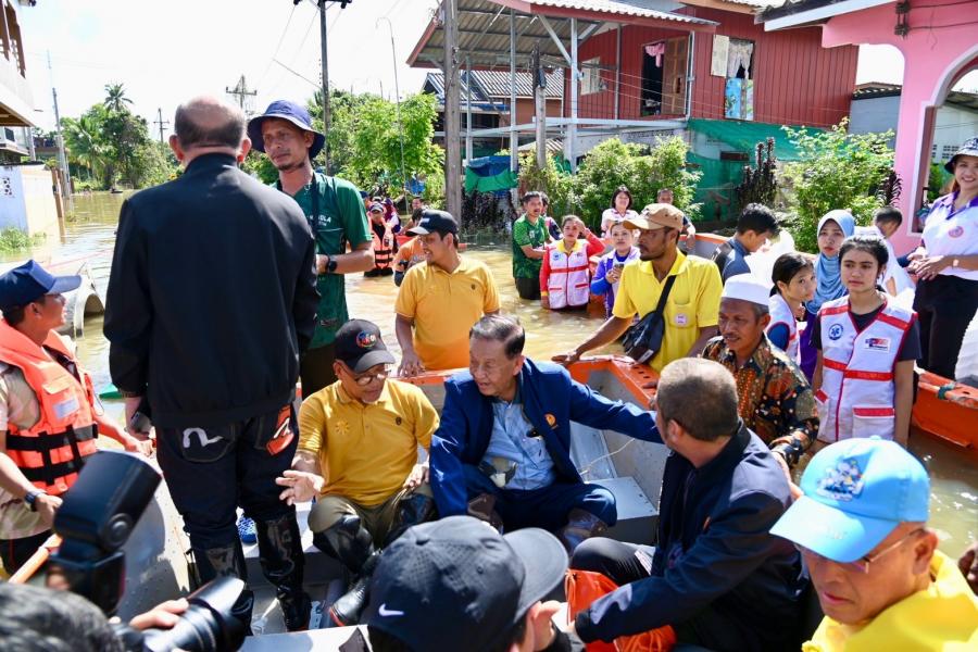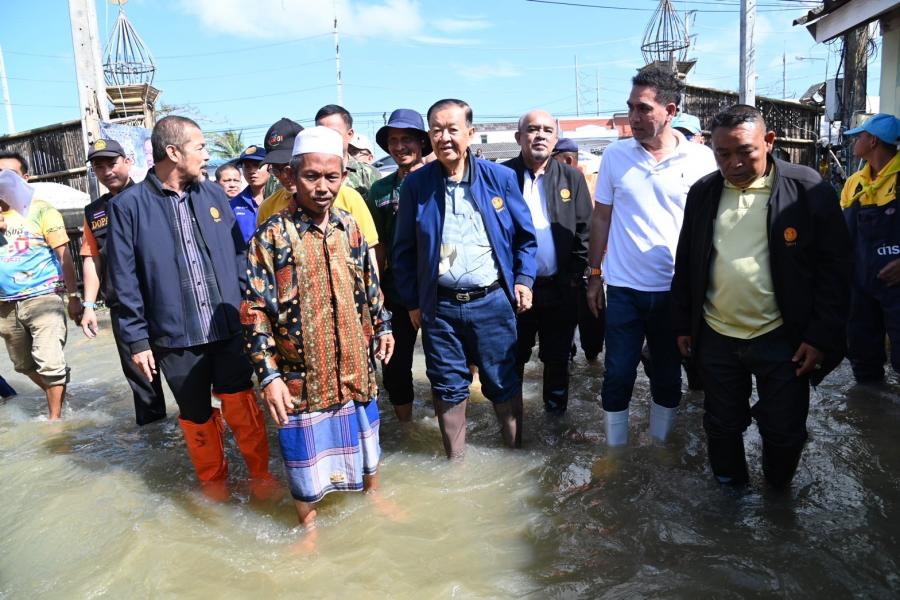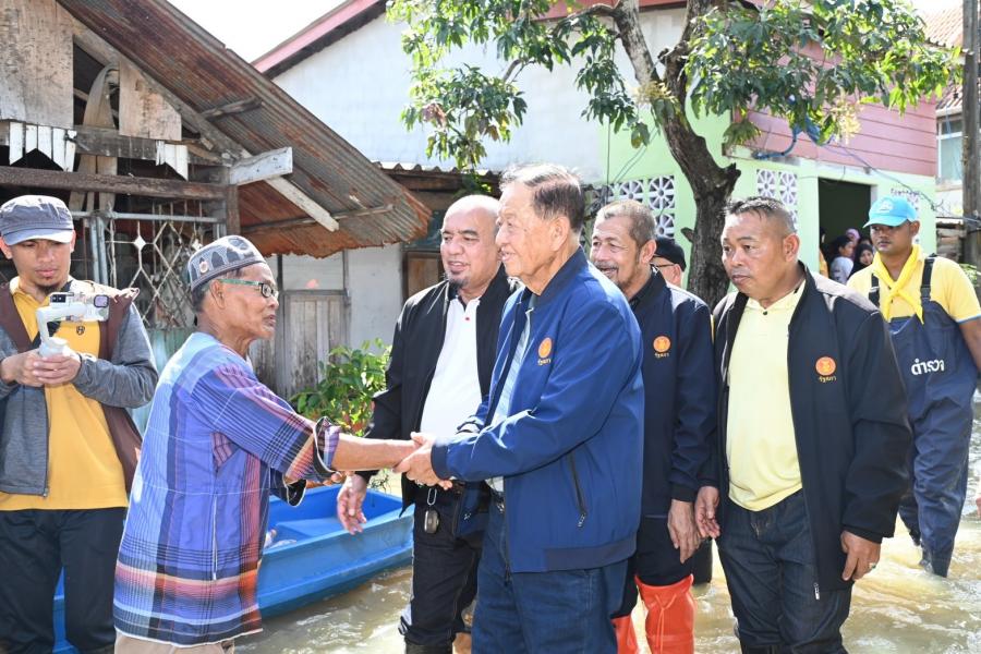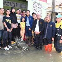 จากนั้น ประธานสภาผู้แทนราษฎรได้เข้าเยี่ยมผู้ประสบภัยน้ำท่วมที่เป็นผู้ป่วยติดเตียง อายุ 71 ปี เป็นอดีตนักมวยชื่อดังของจังหวัดปัตตานี และได้นั่งเรือท้องแบนเพื่อพบปะ ให้กำลังใจประชาชน ซึ่งขณะนี้ยังรอคอยการช่วยเหลือเยียวยาจากภาครัฐ โดยระดับน้ำ ยังคงสูงอยู่ในระดับเอว สัตว์เลี้ยงต้องหนีภัยอยู่ตามต้นไม้ ขอบกำแพง ประชาชนไม่สามารถออกมาใช้ชีวิตประจำวันได้เหมือนปกติ