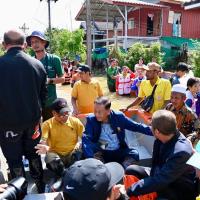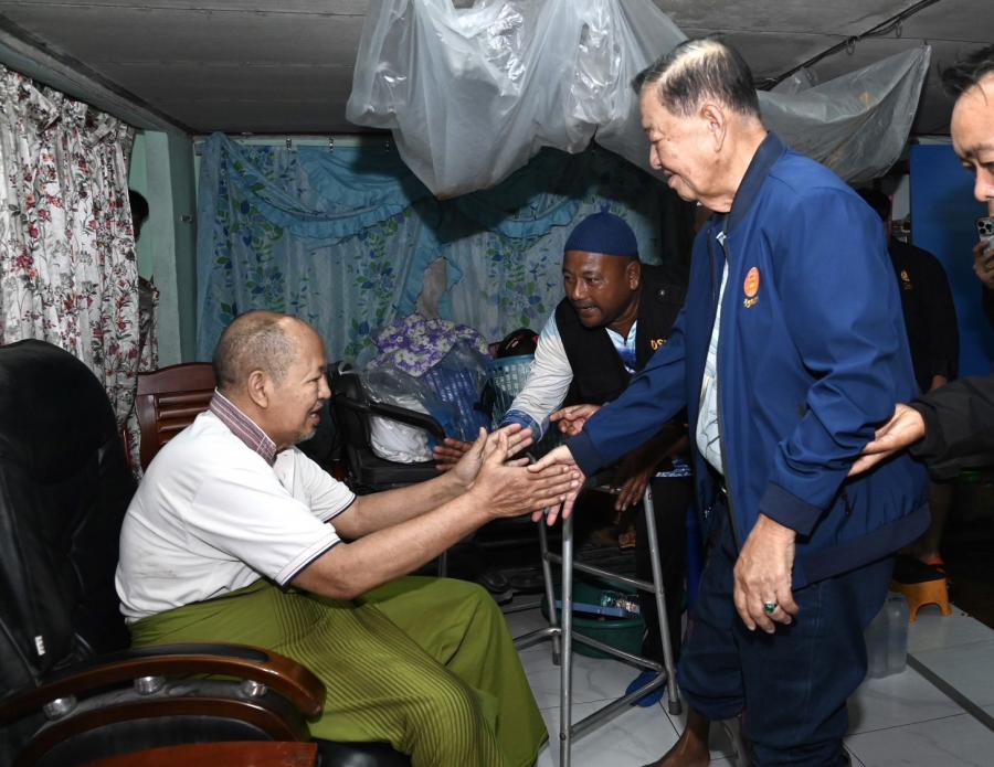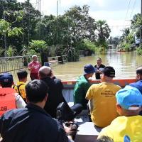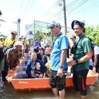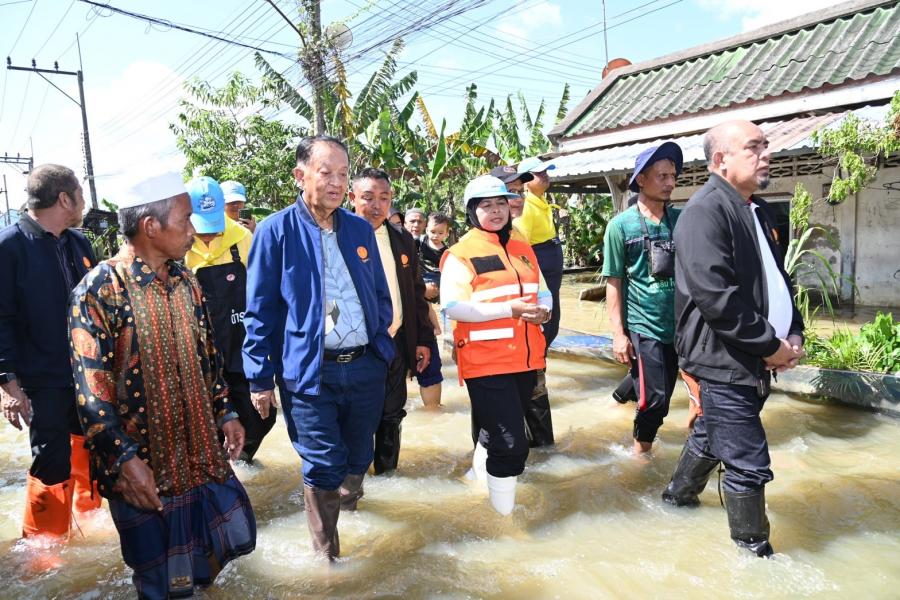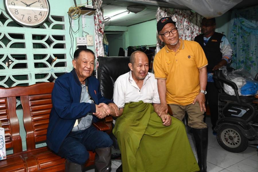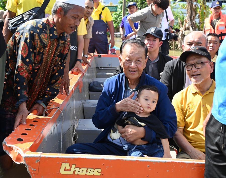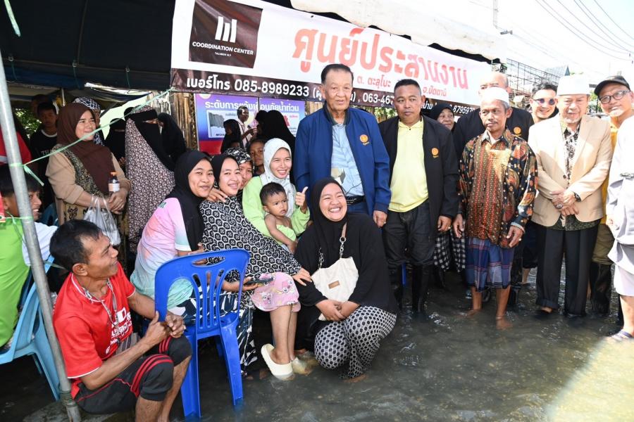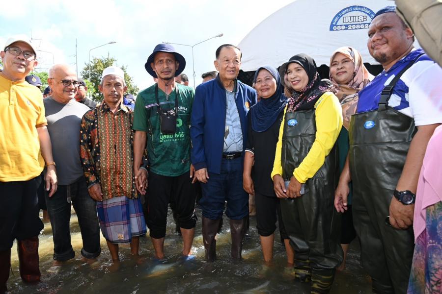จากนั้น ประธานสภาผู้แทนราษฎรได้เข้าเยี่ยมผู้ประสบภัยน้ำท่วมที่เป็นผู้ป่วยติดเตียง อายุ 71 ปี เป็นอดีตนักมวยชื่อดังของจังหวัดปัตตานี และได้นั่งเรือท้องแบนเพื่อพบปะ ให้กำลังใจประชาชน ซึ่งขณะนี้ยังรอคอยการช่วยเหลือเยียวยาจากภาครัฐ โดยระดับน้ำ ยังคงสูงอยู่ในระดับเอว สัตว์เลี้ยงต้องหนีภัยอยู่ตามต้นไม้ ขอบกำแพง ประชาชนไม่สามารถออกมาใช้ชีวิตประจำวันได้เหมือนปกติ