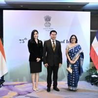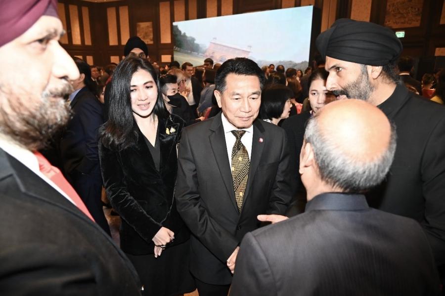ในการนี้ รองประธานสภาผู้แทนราษฎร คนที่สอง ได้มอบแจกันดอกไม้เพื่อแสดงความยินดีและพูดคุยกับเอกอัครราชทูตสาธารณรัฐอินเดียประจำประเทศไทยในงานดังกล่าว
