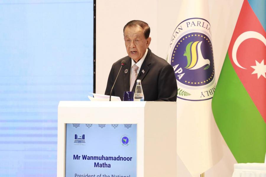 เมื่อวันพฤหัสบดีที่ 22 ก.พ. 67 เวลา 11.00 น. ณ Shusha Meeting Hall โรงแรม The Ritz-Carlton กรุงบากู สาธารณรัฐอาเซอร์ไบจาน นายวันมูหะมัดนอร์ มะทา ประธานรัฐสภาและประธานสภาผู้แทนราษฎร ในฐานะหัวหน้าคณะผู้แทนรัฐสภาไทย ได้ขึ้นกล่าวถ้อยแถลงในการอภิปรายทั่วไปหัวข้อ การส่งเสริมความร่วมมือระดับภูมิภาคเพื่อการพัฒนาที่ยั่งยืนในเอเชีย ในการประชุมสมัชชาใหญ่สมัชชารัฐสภาเอเชีย (APA) ครั้งที่ 14