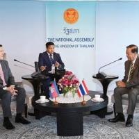 เมื่อวันจันทร์ที่ 4 มีนาคม 2567 เวลา 14.00 นาฬิกา ณ ห้องรับรองพิเศษ 205 ชั้น 2 อาคารรัฐสภา นายวันมูหะมัดนอร์ มะทา ประธานรัฐสภาและประธานสภาผู้แทนราษฎร ให้การรับรอง นายฮุน ซาเรือน (H.E. Mr. Hun Saroeun) เอกอัครราชทูตราชอาณาจักรกัมพูชา ประจำประเทศไทย โดยมี พลเอก วิชิต ยาทิพย์ สมาชิกวุฒิสภา และประธานกลุ่มมิตรภาพสมาชิกรัฐสภาไทย-กัมพูชา นายอารีเพ็ญ อุตรสินธุ์ ที่ปรึกษาประธานสภาผู้แทนราษฎร นายมุข สุไลมาน เลขานุการประธานสภาผู้แทนราษฎร นายธงชาติ รัตนวิชา ผู้ช่วยเลขานุการประธานสภาผู้แทนราษฎร นายฐาคณิษฐ์ พรทองประเสริฐ ผู้ช่วยเลขานุการประธานรัฐสภา นางฟารีดา สุไลมาน คณะทำงานทางการเมืองของประธานสภาผู้แทนราษฎร นายสุธีรพันธ์ สุขวุฒิชัย ที่ปรึกษาคณะทำงานทางการเมืองของประธานสภาผู้แทนราษฎร นายมีชัย ออสุวรรณ คณะทำงานทางการเมืองของประธานสภาผู้แทนราษฎร ว่าที่ ร.ต.ต.อาพัทธ์ สุขะนันท์ เลขาธิการสภาผู้แทนราษฎร และนายอาพล นันทขว้าง ผู้อำนวยการสำนักความสัมพันธ์ระหว่างประเทศ ร่วมให้การรับรอง โดยทั้งสองฝ่ายได้หารือถึงความสัมพันธ์ของสองประเทศที่มีมาอย่างยาวนาน และมีการแลกเปลี่ยนการเยือนระหว่างกันในทุกระดับมาโดยตลอด โดยในระดับราชวงศ์ สมเด็จพระกนิษฐาธิราชเจ้า กรมสมเด็จพระเทพรัตนราชสุดาฯ สยามบรมราชกุมารี เสด็จฯ เยือนกัมพูชาหลายครั้ง อีกทั้งยังได้สร้างโรงเรียนในกัมพูชา 2 แห่ง ในระดับรัฐบาล ล่าสุดเมื่อวันที่ 7 กุมภาพันธ์ 2567 นายกรัฐมนตรีกัมพูชาได้เดินทางเยือนไทยในฐานะแขกของรัฐบาล และได้เข้าพบปะหารือกับประธานรัฐสภาด้วย ซึ่งนายกรัฐมนตรีไทยก็ได้เดินทางเยือนกัมพูชาก่อนหน้านี้เช่นกัน ในอดีต ประธานรัฐสภาก็เคย เดินทางเยือนกัมพูชาหลายครั้ง และกำลังจะเดินทางเยือนกัมพูชาเพื่อเข้าร่วมงานเลี้ยงรอมฎอน ระหว่างวันที่ 21-23 มีนาคม 2567 และจะขอเข้าพบปะบุคคลสำคัญของกัมพูชาด้วย