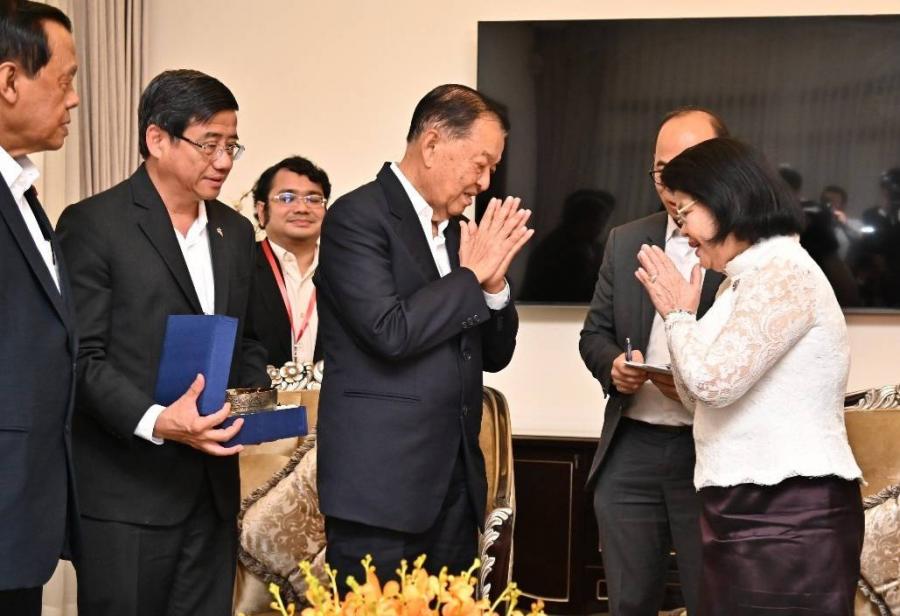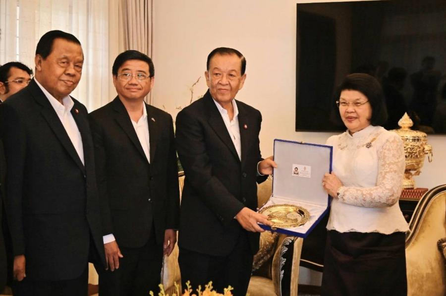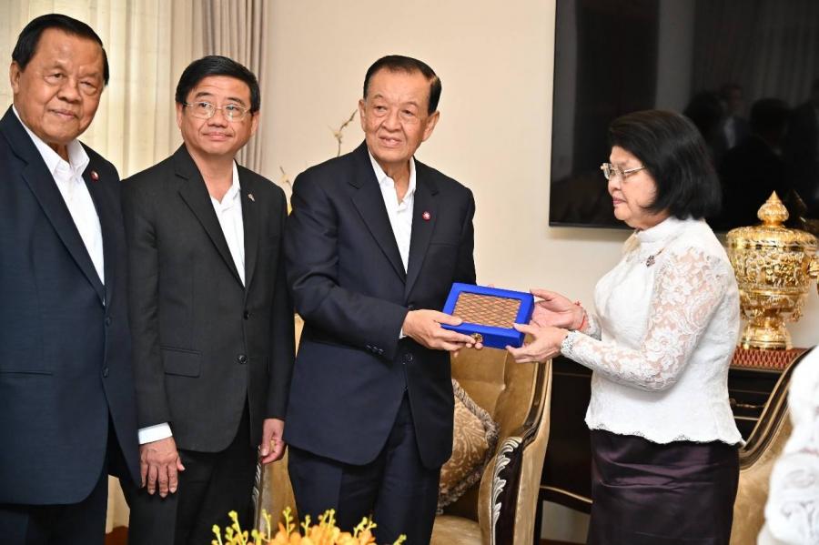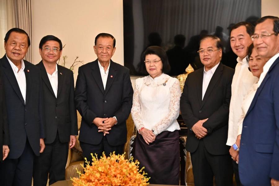 วันเสาร์ที่ 23 มีนาคม 2567 เวลา 09.30 นาฬิกา ณ บ้านพักประธานสภาแห่งชาติราชอาณาจักรกัมพูชา กรุงพนมเปญ นายวันมูหะมัดนอร์ มะทา ประธานรัฐสภา นำคณะผู้แทนรัฐสภาไทย ประกอบด้วย พล.อ.วิชิต ยาทิพย์ ประธานกลุ่มมิตรภาพสมาชิกรัฐสภาไทย - กัมพูชา นายสุวัฒน์ จิราพันธุ์ สมาชิกวุฒิสภา พร้อมด้วย นายเชิดเกียรติ อัตถากร เอกอัครราชทูต ณ กรุงพนมเปญ เข้าพบ สมเด็จมหารัฐสภาธิการธิบดี ควน สุดารี (Samdech Moha Rathsapheathika Thipadei Khuon Sudary) ประธานสภาแห่งชาติราชอาณาจักรกัมพูชา เพื่อแสดงความอาลัยต่อการสูญเสียน้องชาย โอกาสนี้ ประธานสภาแห่งชาติ ได้แสดงความขอบคุณอย่างซาบซึ้งต่อมิตรไมตรีที่รัฐสภาไทยมอบให้ และพร้อมให้การสนับสนุนความร่วมมือเพื่อขยายความสัมพันธ์ระหว่างสถาบันนิติบัญญัติของทั้งสองประเทศ