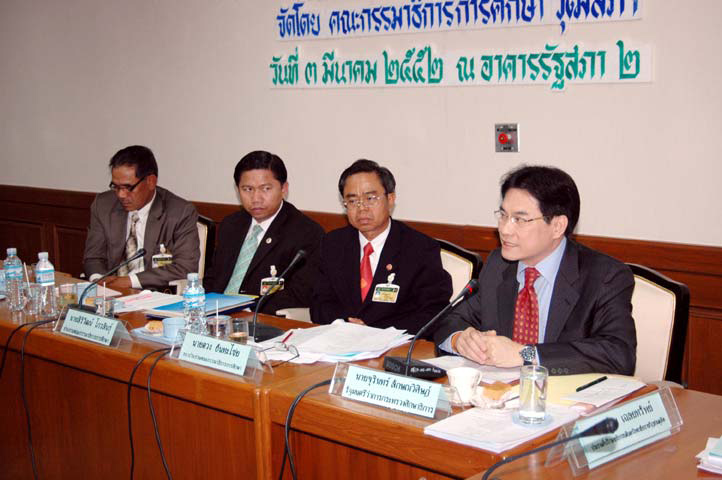 | เมื่อวันอังคารที่ ๓ มีนาคม ๒๕๕๒ เวลา ๙.๓๐ นาฬิกา คณะกรรมาธิการการศึกษา วุฒิสภา โดย นายสิริวัฒน์ ไกรสินธุ์ ประธานคณะกรรมาธิการฯ ได้จัดเสวนาเรื่อง ปฏิรูปการศึกษาภาคประชาชน เพื่อเป็นเวทีสาธารณะสําหรับภาคประชาชนได้เข้ามามีส่วนร่วมในการเสนอแนะแนวทางและความต้องการในการปฏิรูปการศึกษารอบสอง ประกอบกับสร้างความเข้าใจและกระตุ้นให้สังคมเห็นความสําคัญของการศึกษาว่าเป็นสิ่งสําคัญในการพัฒนาบุคลากรและประเทศชาติที่ยั่งยืนต่อไป โดยมี นายจุรินทร์ ลักษณวิศิษฐ์ รัฐมนตรีว่าการกระทรวงศึกษาธิการ กล่าวปาฐกถาพิเศษเรื่อง ปฏิรูปการศึกษาภาคประชาชน ณ ห้องรับรอง ๑-๒ ชั้น ๓ อาคารรัฐสภา ๒ |