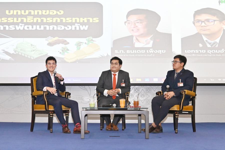 จากนั้นเป็นการอภิปรายเรื่อง บทบาทของคณะ กมธ.การทหาร สภาผู้แทนราษฎร กับการพัฒนากองทัพ โดย ร.ท.ธนเดช เพ็งสุข รองประธานคณะ กมธ.การทหาร คนที่สอง นายเอกราช อุดมอำนวย กมธ. และเลขานุการคณะ กมธ. และนายชยพล สท้อนดี โฆษกคณะ กมธ.