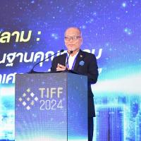 วันศุกร์ที่ 3 พฤษภาคม 2567 เวลา 09.30 นาฬิกา ณ ห้องประชุม โรงแรมอัลมีรอซ กรุงเทพฯ นายวันมูหะมัดนอร์ มะทา ประธานรัฐสภา เป็นประธานในพิธีเปิดงานสัมมนาการเงินอิสลามประเทศไทย Thailand Islamic Finance Forum 2024 (TIFF 2024) การเงินฮาลาลเปลี่ยนผ่าน สู่ความมั่งคั่งยั่งยืน และปาฐกถาพิเศษในหัวข้อ การเงินฮาลาล การเงินฐานคุณธรรม เพื่อพัฒนาคุณภาพชีวิตประชาชน โดยมี นายอรุณ บุญชม จุฬาราชมาตรี กล่าวปาฐกถาในหัวข้อ การส่งเสริมและพัฒนาการเงินฮาลาลในประเทศไทยสู่มาตรฐานสากล นายทวีลาภ ฤทธาภิรมย์ กรรมการผู้จัดการ ธนาคารอิสลามแห่งประเทศไทย กล่าวปาฐกถาในหัวข้อ ทิศทางการเงินฮาลาลกับการพัฒนาเศรษฐกิจไทยอย่างยั่งยืน มองผ่านธนาคารอิสลามแห่งประเทศไทย และ ผศ.วรวิทย์ บารู สส.พรรคประชาชาติ ในฐานะประธานกรรมการเครือข่ายสหกรณ์อิสลามแห่งประเทศไทย กล่าวรายงาน และปาฐกถาในหัวข้อ สหกรณ์อิสลาม : สถาบันการเงินฐานคุณธรรมกับการพัฒนาเศรษฐกิจไทย จากนั้น ประธานรัฐสภา มอบของที่ระลึกให้แก่ผู้สนับสนุนงานและแขกผู้เกียรติ