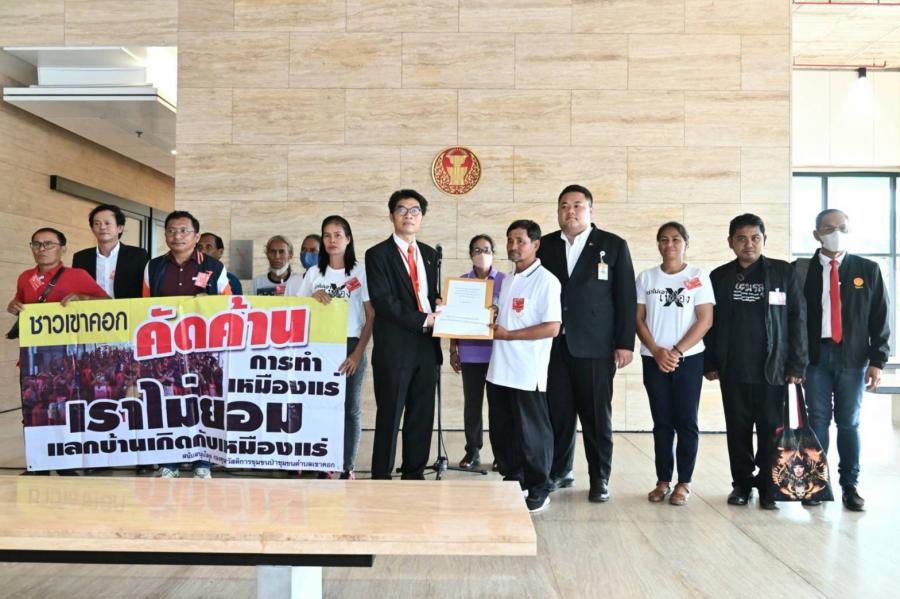 วันพฤหัสบดีที่ 16 พฤษภาคม 2567 เวลา 11.00 นาฬิกา ณ จุดรับยื่นหนังสือชั้น 1 (โซนกลาง) อาคารรัฐสภา นายพูนศักดิ์ จันทร์จำปี ประธานคณะ กมธ. การที่ดิน ทรัพยากรธรรมชาติและสิ่งแวดล้อม รับเรื่องเรียนและร้องทุกข์จาก นายชำนิจ ดีมาก ตัวแทนกลุ่มรักษ์ภูเขาไฟเขาคอก เรื่อง ขอคัดค้านการเข้าสำรวจแร่ในเขตพื้นที่ป่าสงวนแห่งชาติ (ป่าเขาคอก) และขอให้ตรวจสอบการเพิกถอนป่าชุมชน (หนองไม้งาม เขาคอก) เพื่อการสัมปทานเหมืองแร่ ตามที่ สำนักงานอุตสาหกรรมจังหวัดบุรีรัมย์ ได้ดำเนินการออก อาชญาบัตรผูกขาดสำรวจแร่ ที่ 18/2564 ให้แก่ บริษัท ฉัตรศิลา 63 จำกัด และ 21/2564 ให้แก่ บริษัท เหมืองหินราชจำกัด เพื่อทำการสำรวจหินบะชอลต์ ที่ใช้ในอุตสาหกรรมก่อสร้าง ในพื้นที่ ต.เขาคอก อ.ประโคนชัย จ.บุรีรัมย์ รวมเนื้อที่ทั้งหมด 3,052 ไร่ ซึ่งพื้นที่ดังกล่าวอยู่ในเขตป่าสงวนแห่งชาติ โดยผู้ถืออาชญาบัตรผูกขาดสำรวจแร่จะเข้าสำรวจ โดยวิธีการเจาะสำรวจได้ยื่นคำขออนุญาตให้เข้าไปศึกษาวิจัยทางวิชาการภายในเขตป่าสงวนแห่งชาติ ต่อมา เมื่อวันที่ 27 ก.ค. 65 ชาวบ้านบ้านเขาคอกได้รับการประชาสัมพันธ์จากผู้ใหญ่บ้านให้เข้าร่วมการทำประชาคมเพราะมีเจ้าหน้าที่จะมาชี้แจงเรื่องการขอเข้าสำรวจแร่ในพื้นที่ โดยมีหน่วยงานที่จะมาชี้แจง คือ กำนันตำบลเขาคอก ผู้ใหญ่บ้านหมู่ที่ 1 และหมู่ที่ 15 เจ้าหน้าที่กรมป่าไม้ อุตสาหกรรมจังหวัดบุรีรัมย์ และตัวแทนผู้ประกอบการ คือ บริษัทฉัตรศิลา 63 จำกัด และบริษัทเหมืองหินราช จำกัด ผู้รับอนุญาตอาชญาบัตรสำรวจแร่ ในการประชุมมีการชี้แจงว่าจะมีการขอทำการขุดเจาะสำรวจแร่จำนวน 8 หลุม พื้นที่ 1,343 ไร่ บริษัท ผู้ประกอบการได้เริ่มดำเนินการต่าง ๆ เพื่อจะขอทำเหมืองแร่มาตั้งแต่วันที่ 16 ก.ย. 64 และจะมีอายุของอาชญาบัตรมีระยะเวลา 2 ปี ตั้งแต่ปี 2564 - 2566 โดยชาวบ้านไม่เคยรู้มาก่อน ซึ่งหน่วยงานที่มาชี้แจงได้แจ้งว่าจะนิมนต์พระวัดป่าบำรุงธรรมซึ่งอยู่บนภูเขาคอกให้ย้ายลงมาจากเขาโดยให้เหตุผลว่าจะสร้างวัดให้ใหม่ จะให้ย้ายหมุดปักลงมาด้านล่างภูเขา ทั้งนี้ ขณะนี้ทางสำนักสงฆ์มีเหลือขั้นตอนการขออนุญาตผ่านทางกรมป่าไม้ซึ่งได้ยื่นเรื่องแล้วแต่กลับเงียบหาย เมื่อมีเหตุการณ์เช่นนี้ เหตุใดจึงมีการอนุญาตให้จะทำการย้ายหมุดลงมาได้อย่างง่ายดายทำเกิดข้อสงสัยว่าหน่วยงานรัฐได้มีการเอื้อประโยชน์เพื่อผู้ประกอบการสำรวจแร่ทำเหมืองอย่างชัดเจน ซึ่งในการประชุมดังกล่าวชาวบ้านทั้งหมดไม่เห็นด้วยให้มีการดำเนินการขุดเจาะสำรวจแร่ แต่หน่วยงานราชการกลับพยายามนำเสนอในทำนองว่าชาวบ้านเข้าใจและเห