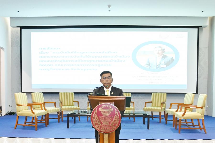 วันจันทร์ที่ 20 พฤษภาคม 2567 เวลา 09.00 นาฬิกา ณ ห้องประชุมสัมมนา B1-2 ชั้น B1 อาคารรัฐสภา นายกมลศักดิ์ ลีวาเมาะ ประธานคณะ กมธ.การกฎหมาย ยุติธรรมและสิทธิมนุษยชน เป็นประธานในพิธีเปิดการสัมมนา เรื่อง "การบังคับใช้กฎหมายคนเข้าเมือง ผลกระทบจากการบังคับใช้กฎหมายคนเข้าเมือง และแนวทางในการแก้ไขกฎหมายคนเข้าเมือง" โดยมี นายพงศ์พันธุ์ จิตรานุกิจ ผู้บังคับบัญชากลุ่มงานคณะ กมธ.การกฎหมาย ยุติธรรมและสิทธิมนุษยชน กล่าวรายงาน ในการนี้ สส. ผู้แทนจากพรรคการเมือง หน่วยงานราชการ ภาคประชาสังคม องค์กรระหว่างประเทศ และประชาชนที่สนใจ เข้าร่วมการสัมมนา