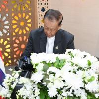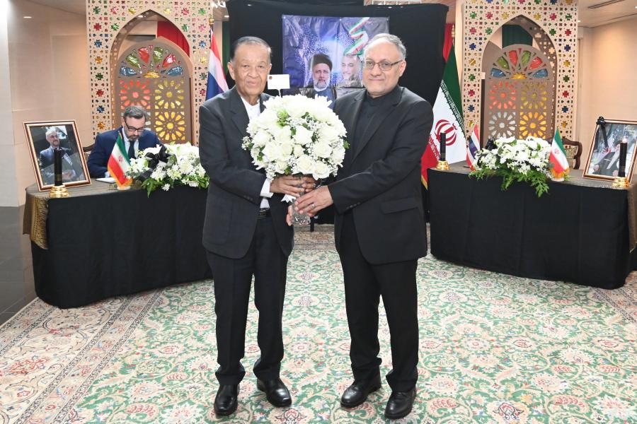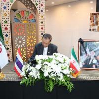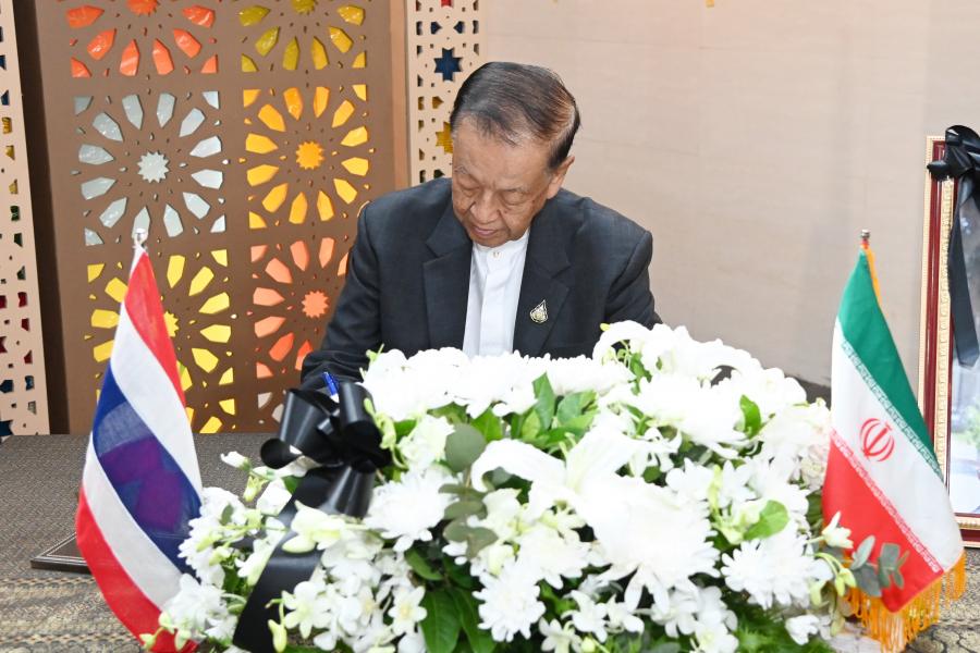ประธานรัฐสภาและประธานสภาผู้แทนราษฎร พร้อมด้วย นายมุข สุไลมาน เลขานุการประธานสภาผู้แทนราษฎร ร่วมลงนามและมอบแจกันดอกไม้ในพิธีไว้อาลัยแก่นายซัยยิด เอบราฮิม ไรซี (H.E.Mr. Seyyed Ebrahim Raisi) ประธานาธิบดีสาธารณรัฐอิสลามอิหร่าน นายฮุซัยน์ อะมีร์ อับดุลลอฮิยอน (Hon. Mr. Hossein Amir-Abdollahian) รัฐมนตรีว่าการกระทรวงการต่างประเทศ สาธารณรัฐอิสลามอิหร่าน และคณะผู้ติดตาม