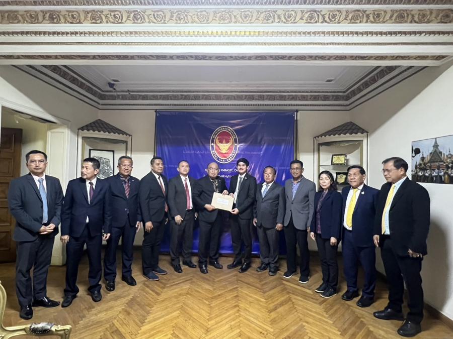 เมื่อวันที่ 2 มิ.ย. 67 เวลา 16.00 นาฬิกา ณ สถานเอกอัครราชทูต ณ กรุงไคโร นายซูการ์โน  มะทา สมาชิกสภาผู้แทนราษฎร ในฐานะประธานกลุ่มมิตรภาพฯ ไทย-อียิปต์ พร้อมด้วย รศ.พลเอก ไตรโรจน์  ครุธเวโช สมาชิกวุฒิสภา ในฐานรองประธานกลุ่มมิตรภาพฯ นางปทิดา  ตันติรัตนานนท์ สส. ในฐานะกรรมการ นายอับดุลอายี  สาแม็ง สส.ในฐานะกรรมการ