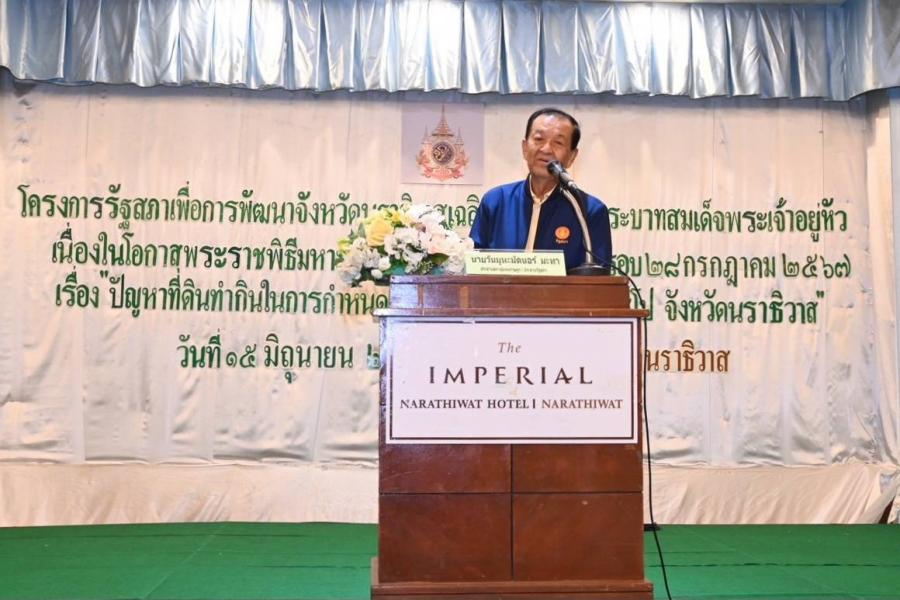 วันเสาร์ที่ 15 มิถุนายน 2567 เวลา 09.15 นาฬิกา ณ ห้องประชุมนราทัศน์ โรงแรมอิมพีเรียล ต.บางนาค อ.เมืองนราธิวาส จ.นราธิวาส นายวันมูหะมัดนอร์ มะทา ประธานรัฐสภา เป็นประธานในพิธีเปิดการสัมมนาเรื่อง "ปัญหาที่ดินทำกินในการกำหนดพื้นที่อุทยานแห่งชาติน้ำตกซีโป จ.นราธิวาส" ในโครงการรัฐสภาเพื่อการพัฒนา จ.นราธิวาส เฉลิมพระเกียรติพระบาทสมเด็จพระเจ้าอยู่หัว เนื่องในโอกาสพระราชพิธีมหามงคลเฉลิมพระชนมพรรษา 6 รอบ 28 กรกฎาคม 2567 โดยมี นายกมลศักดิ์ ลีวาเมาะ สส. จังหวัดนราธิวาส ในฐานะประธานคณะทำงานดำเนินโครงการจัดสัมมนาฯ กล่าวรายงาน ในการนี้ สมาชิกสภาผู้แทนราษฎร ข้าราชการรัฐสภาฝ่ายการเมือง คณะทำงานทางการเมืองของประธานสภาผู้แทนราษฎร เลขาธิการสภาผู้แทนราษฎร คณะผู้บริหารและข้าราชการสำนักงานเลขาธิการสภาผู้แทนราษฎร คณะผู้บริหารจังหวัดนราธิวาส และประชาชนในพื้นที่ร่วมสัมมนา
