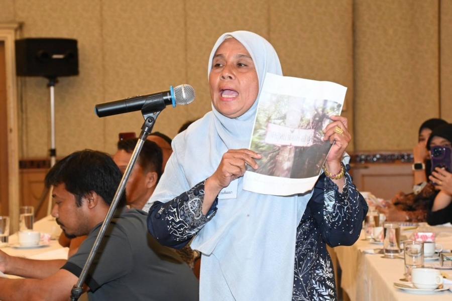 โอกาสนี้ ประธานรัฐสภา ได้ร่วมเวทีสัมมนากับวิทยากร ได้แก่ นายกมลศักดิ์ ลีวาเมาะ สส. จังหวัดนราธิวาส และนายกูเฮง ยาวอหะซัน เลขานุการ รมว.ยุติธรรม โดยมีตัวแทนหน่วยงานที่เกี่ยวข้อง อาทิ กรมป่าไม้ กรมอุทยานแห่งชาติ สัตว์ป่า และพันธุ์พืช รองผู้ว่าราชการจังหวัดนราธิวาส และประชาชน 4 อำเภอที่ได้รับผลกระทบได้แก่ อำเภอระแงะ อำเภอจะแนะ อำเภอศรีสาคร และอำเภอรือเสาะ เข้าร่วมรับฟัง พร้อมสะท้อนปัญหาและแสดงความคิดเห็น ทั้งนี้ ประธานรัฐสภา กล่าวว่า เวทีสัมมนาในครั้งนี้มุ่งแก้ปัญหาที่ดินทำกินของประชาชน 4 อำเภอ หากกรมอุทยานฯ ประกาศให้เป็นเขตอุทยานแห่งชาติน้ำตกซีโป โดยปรับเปลี่ยนแนวเขตที่เตรียมประกาศเขตอุทยานฯ เสียใหม่ ซึ่งต้องไม่ทับที่ดินทำกินของประชาชน นอกจากนี้ ยังต้องการให้ภาคประชาชนเข้ามามีส่วนร่วมตรวจสอบแนวเขตอุทยานฯ ผ่านคณะทำงานตรวจสอบข้อเท็จจริงและที่ดินทำกินที่จังหวัดตั้งขึ้น โดยเพิ่มตัวแทนภาคประชาชนในพื้นที่อำเภอละ 2 คน ร่วมเป็นคณะกรรมการ อีกทั้งให้หน่วยงานเร่งดำเนินการออกเอกสารสิทธิให้ประชาชนที่อยู่อาศัยในพื้นที่นอกเขตอุทยานฯ ทั้งนี้ หวังว่าแนวทางการแก้ปัญหาในพื้นที่ดังกล่าวจะเป็นต้นแบบ เพื่อนำไปใช้ในการแก้ปัญหาที่ดินทำกินในพื้นที่อื่น ๆ ต่อไป