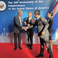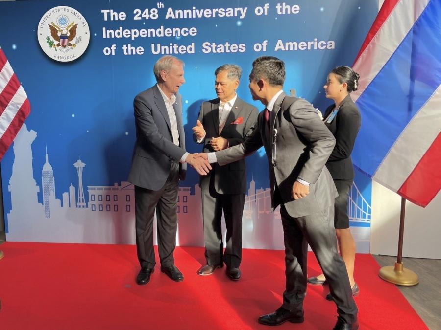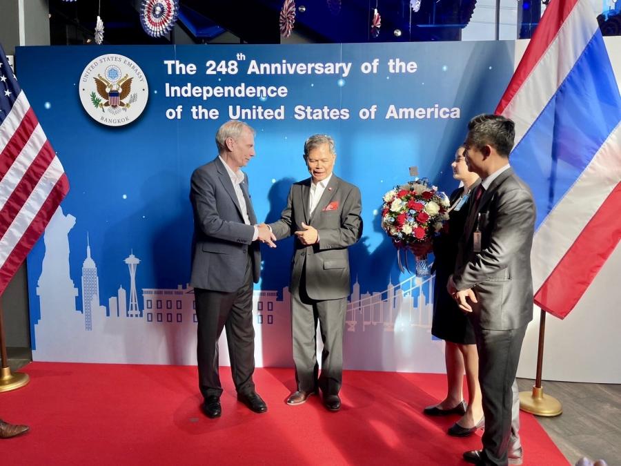 เมื่อวันอังคารที่ 2 กรกฎาคม 2567 เวลา 17.30 น. ณ ท็อปกอล์ฟ เมกาซิตี้ จ.สมุทรปราการ นายวันมูหะมัดนอร์ มะทา ประธานรัฐสภา มอบหมายให้ ผศ.มีชัย ออสุวรรณ ที่ปรึกษาคณะทำงานทางการเมืองของประธานสภาผู้แทนราษฎร เป็นผู้แทนเข้าร่วมงานเลี้ยงเฉลิมฉลองครบรอบ 248 ปี วันประกาศอิสรภาพสหรัฐอเมริกาและมอบแจกันดอกไม้แสดงความยินดีในโอกาสดังกล่าวแก่ นายโรเบิร์ต เอฟ. โกเดค ( H.E. Mr. Robert F. Godec) เอกอัครราชทูตสหรัฐอเมริกาประจำประเทศไทย โดยมีนาย สุวัฒน์ จิราพันธุ์ สมาชิกวุฒิสภา ร่วมแสดงความยินดี ทั้งนี้ งานดังกล่าวจัดขึ้นเพื่อเฉลิมฉลองครบรอบ 248 ปี วันประกาศอิสรภาพของสหรัฐอเมริกา ซึ่งตรงกับวันที่ 4 กรกฎาคม ของทุกปีเพื่อเน้นย้ำมิตรภาพ รวมถึงกระชับความสัมพันธ์ระหว่างสหรัฐอเมริกากับไทยให้แน่นแฟ้นยิ่งขึ้นไป