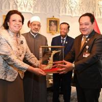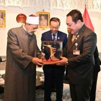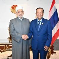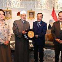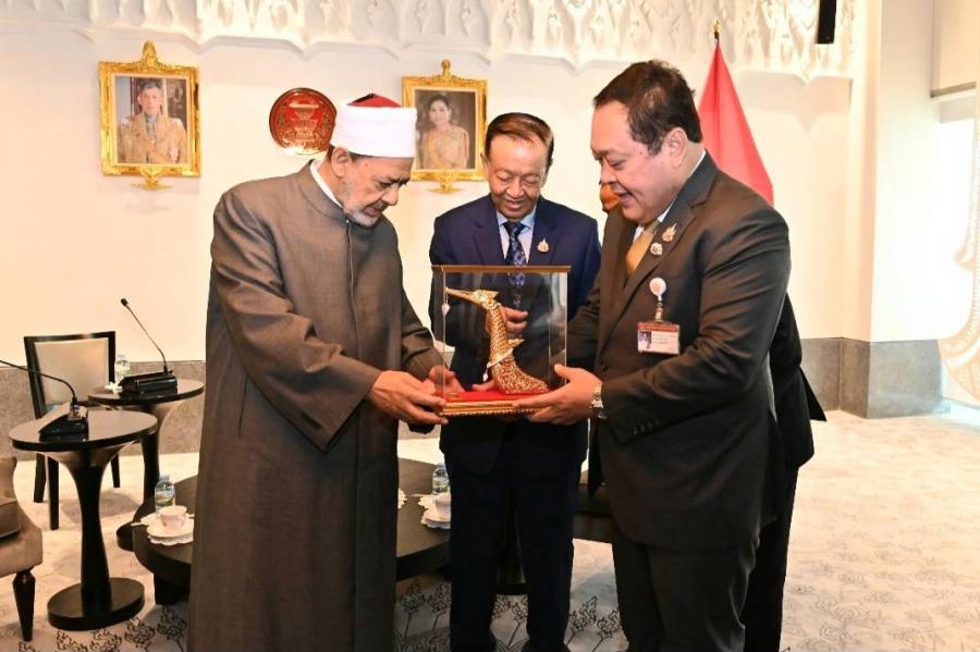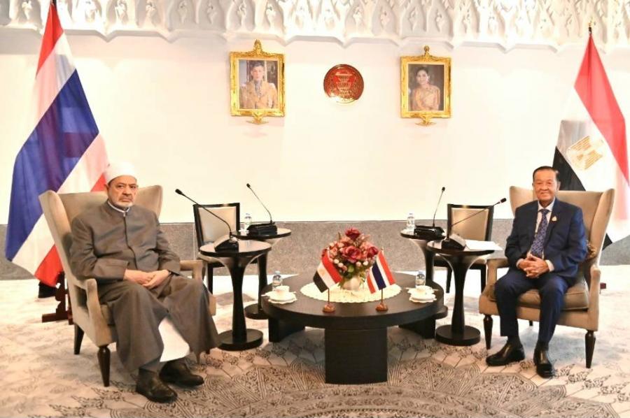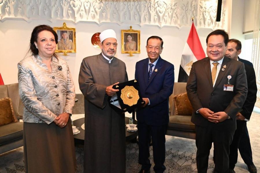 ด้านผู้นำสูงสุดทางศาสนาอิสลามของสาธารณรัฐอาหรับอียิปต์ กล่าวขอบคุณและยินดีที่ได้มีโอกาสเข้าพบปะหารือกับประธานรัฐสภาฯ พร้อมกล่าวเห็นด้วยกับความสัมพันธ์และความร่วมมือที่ยาวนานระหว่างมหาวิทยาลัยอัล อัซฮัร และประเทศไทย โดยขณะนี้มหาวิทยาลัยได้มีการจัดตั้งสภานักวิชาการมุสลิมขึ้น เพื่อส่งเสริมความร่วมมือด้านวัฒนธรรมและการเผยแพร่ศาสนาอิสลามสายกลางที่ถูกต้องให้กับชาวมุสลิมในประเทศอื่น ๆ ทั่วโลก โดยมุ่งหวังให้เกิดการแก้ไขปัญหาสังคมอย่างสันติร่วมกัน ซึ่งต้องอาศัยการส่งเสริมธรรมาภิบาลในภาคการเมืองด้วย เนื่องจากเป็นปัจจัยสำคัญในพัฒนาประเทศและการลดปัญหาต่าง ๆ ที่เกิดขึ้นในสังคม ในโอกาสนี้ มหาวิทยาลัยยินดีที่จะให้ความร่วมมือกับไทยในเรื่องการขยายกรอบอัตราของทุนการศึกษาให้กับนักศึกษาไทยในอนาคต โดยผ่านการประสานงานกับเอกอัครราชทูตสาธารณรัฐอาหรับอียิปต์ประจำประเทศไทยต่อไป
