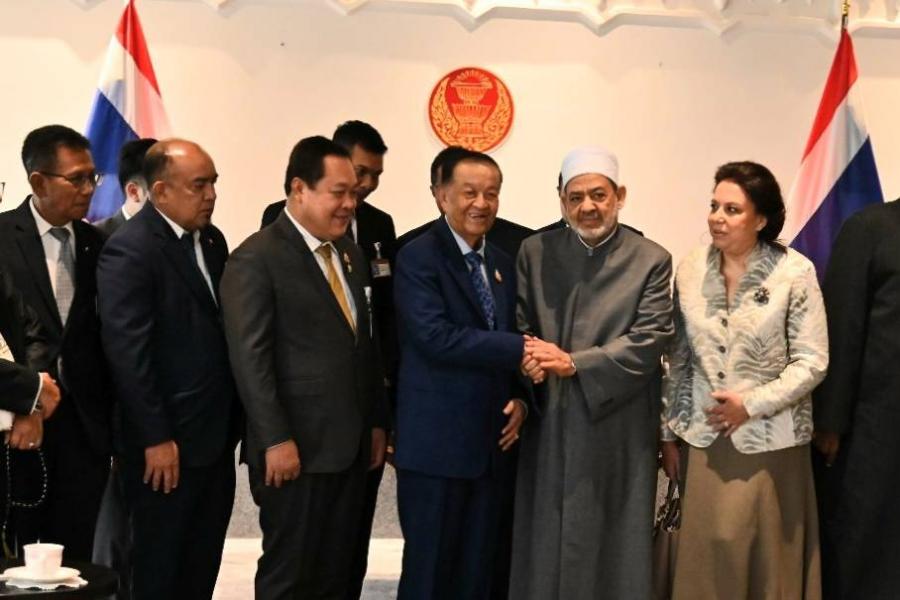 ประธานรัฐสภา กล่าวต้อนรับผู้นำสูงสุดทางศาสนาอิสลามของสาธารณรัฐอาหรับอียิปต์ที่ให้เกียรติมาเยือนรัฐสภาไทยในครั้งนี้ ซึ่งถือเป็นครั้งแรกในประวัติศาสตร์ พร้อมทั้งกล่าวว่า ไทยและอียิปต์มีความสัมพันธ์ที่ดีระหว่างกันในทุกระดับ โดยมีการแลกเปลี่ยนการเยือนอย่างสม่ำเสมอทั้งในระดับราชวงศ์ ระดับผู้นำระดับสูง และระดับสมาชิกรัฐสภาผ่านช่องทางของกลุ่มมิตรภาพสมาชิกรัฐสภาฯ ซึ่งในปีนี้จะครบรอบ 70 ปี ความสัมพันธ์ทางการทูตระหว่างกัน นอกจากนี้ ในขณะที่ตนดำรงตำแหน่งประธานรัฐสภาเมื่อ 30 ปีก่อน ได้เดินทางไปเยือนรัฐสภาอียิปต์และมหาวิทยาลัยอัล อัซฮัร ซึ่งได้รับการต้อนรับเป็นอย่างดี ประธานรัฐสภาฯ กล่าวขอบคุณในความช่วยเหลือของอียิปต์และมหาวิทยาลัยอัล อัซฮัร ในเรื่องการมอบทุนการศึกษาให้กับนักศึกษาไทยมาอย่างต่อเนื่องทุกปี นับตั้งแต่อดีตจนถึงปัจจุบัน ซึ่งขณะนี้มีนักศึกษาไทยศึกษาอยู่ที่อียิปต์จำนวนเกือบ 3,000 คน ในสาขาด้านศาสนาและสายสามัญต่าง ๆ อาทิ อิสลามศึกษา ภาษาอาหรับ วิศวกรรมและเทคโนโลยี และการแพทย์ ซึ่งบุคลากรเหล่านี้กลับมาสร้างประโยชน์อย่างมากในการพัฒนาประเทศ รวมทั้งกล่าวขอบคุณ มหาวิทยาลัยอัล อัซฮัร ที่ได้ส่งครูมาสอนภาษาอาหรับและศาสนาอิสลามสายกลางในหลายจังหวัดของไทย ซึ่งถือความร่วมมือที่ดีระหว่างกันโดยผ่านสำนักจุฬาราชมนตรี และคณะกรรมการกลางอิสลามแห่งประเทศไทย รัฐสภามีความยินดีที่จะให้การสนับสนุนในทุกโอกาส เพื่อขยายความร่วมมือให้มากขึ้น และหากมีโอกาสตนจะนำคณะผู้แทนรัฐสภาไทยเดินทางไปเยือนอียิปต์อีกครั้งในอนาคต