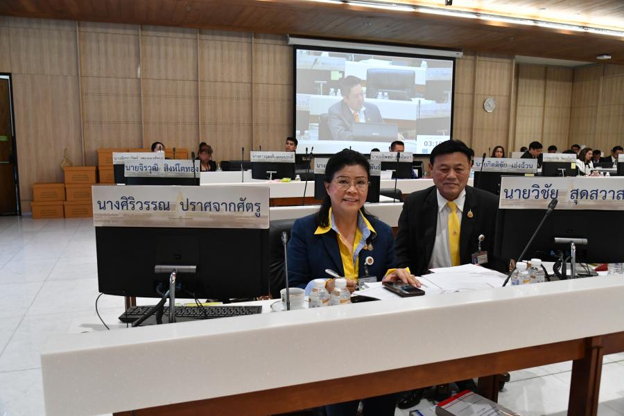 วันพุธที่ 10 กรกฎาคม 2567 เวลา 09.30 นาฬิกา ณ ห้องประชุม CB 406 ชั้น 4 อาคารรัฐสภา นางมนพร เจริญศรี รองประธาน คณะ กมธ. วิสามัญพิจารณา ร่าง พ.ร.บ.งบประมาณรายจ่ายประจำปี 2568 คนที่ห้า เป็นประธานการประชุม คณะ กมธ. ครั้งที่ 12/2567 เพื่อพิจารณา ร่าง พ.ร.บ.งบประมาณรายจ่ายประจำปีงบประมาณ พ.ศ. 2568แผนการพิจารณาร่าง พ.ร.บ.งบประมาณรายจ่าย ประจำปีงบประมาณ พ.ศ. 2568 มาตรา 8กระทรวงกลาโหมรวม 6 หน่วยงาน |