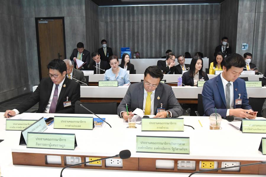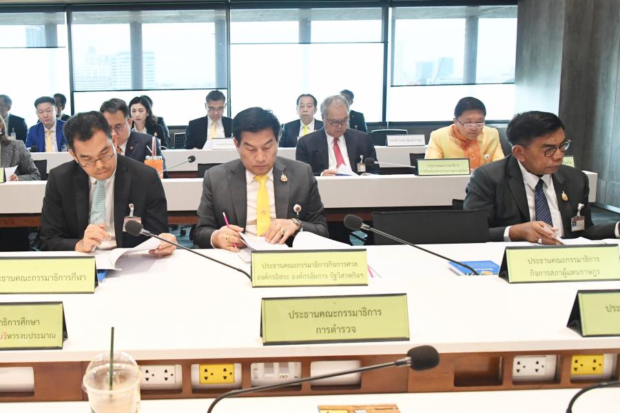 วันพฤหัสบดีที่ 11 กรกฎาคม 2567 เวลา 09.00 นาฬิกา ณ ห้องประชุม N 405 ชั้น 4 อาคารรัฐสภา นายปดิพัทธ์ สันติภาดา รองประธานสภาผู้แทนราษฎร คนที่หนึ่ง เป็นประธานการประชุมร่วมกันของประธานสภาผู้แทนราษฎรและประธาน คณะกรรมาธิการสามัญของสภาผู้แทนราษฎรทุกคณะ ครั้งที่ 2/2567 เพื่อพิจารณาวินิจฉัยว่าร่าง พ.ร.บ.ยกเลิกคำสั่งหัวหน้าคณะรักษาความสงบแห่งชาติ ที่ 4/2559 เรื่อง การยกเว้นการใช้บังคับกฎกระทรวงให้ใช้บังคับผังเมืองรวมสำหรับการประกอบกิจการบางประเภท ลงวันที่ 20 ม.ค. 2559 พ.ศ. .... (ว่าที่ ร.ต.สมชาติ เตชถาวรเจริญ) สส. พรรคก้าวไกล กับคณะเป็นผู้เสนอ เป็นร่าง พ.ร.บ.เกี่ยวด้วยการเงินหรือไม่ ตามมาตรา 134 ของรัฐธรรมนูญแห่งราชอาณาจักรไทย พ.ศ. 2560 |