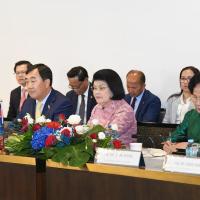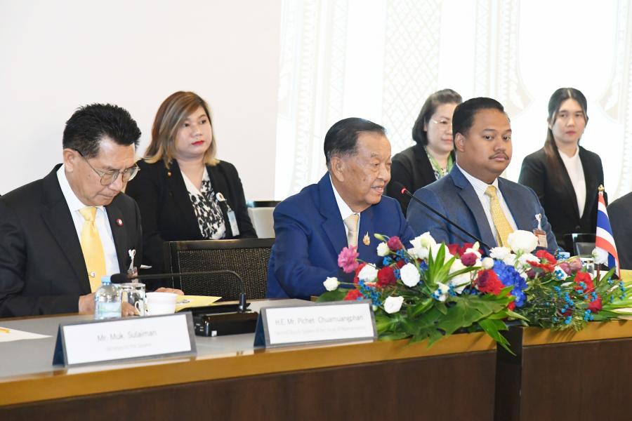 วันพฤหัสบดีที่ 11 กรกฎาคม 2567 เวลา 14.10 นาฬิกา ณ ห้องรับรองพิเศษ 207 ชั้น 2 โซนกลาง อาคารรัฐสภา นายวันมูหะมัดนอร์ มะทา ประธานรัฐสภาและประธานสภาผู้แทนราษฎร ให้การรับรอง สมเด็จมหารัฐสภาธิการธิบดี ควน โซะดารี (Samdech Moha Rathsapheathika Thipadei Khuon Sudary) ประธานสภาแห่งชาติราชอาณาจักรกัมพูชาและคณะ ในโอกาสเดินทางเยือนประเทศไทยอย่างเป็นทางการ ระหว่างวันที่ 11 - 12 ก.ค. 67 โดยมีบุคคลสำคัญร่วมให้การต้อนรับ อาทิ นายพิเชษฐ์ เชื้อเมืองพานรองประธานสภาผู้แทนราษฎร คนที่สอง นายณัฐชา บุญไชยอินสวัสดิ์ สมาชิกสภาผู้แทนราษฎรและรองประธานกลุ่มมิตรภาพสมาชิกรัฐสภาไทย - กัมพูชา น.ส.พิชชา เชื้อเมืองพาน ผู้ช่วยเลขานุการรองประธานสภาผู้แทนราษฎร คนที่สอง ว่าที่ ร.ต.ต.อาพัทธ์ สุขะนันท์ เลขาธิการสภาผู้แทนราษฎร น.ส.สตีจิตร ไตรพิบูลย์สุข รองเลขาธิการสภาผู้แทนราษฎร นางจงเดือน สุทธิรัตน์ รองเลขาธิการสภาผู้แทนราษฎร และนายอาพล นันทขว้าง ผู้อำนวยการสำนักความสัมพันธ์ระหว่างประเทศ ร่วมให้การรับรอง ทั้งสองฝ่ายได้หารือถึงความสัมพันธ์ระหว่างไทยและกัมพูชาซึ่งมีความสัมพันธ์อันดีต่อกันมาโดยตลอด ทั้งในระดับราชวงศ์ รัฐบาล รัฐสภาและประชาชน โดยในปี 2567 ครบรอบ 74 ปี ความสัมพันธ์ทางการทูต นอกจากนี้ ไทยและกัมพูชามีพระมหากษัตริย์เป็นพระประมุขเช่นเดียวกัน และยังมีความคล้ายคลึงกันในหลาย ๆ ด้าน อาทิ ด้านวัฒนธรรม และวิถีชีวิตสมเด็จพระกนิษฐาธิราชเจ้า กรมสมเด็จพระเทพรัตนราชสุดาฯ สยามบรมราชกุมารี เสด็จพระราชดำเนินเยือนกัมพูชาหลายครั้ง โดยทรงเสด็จฯ ทอดพระเนตรโรงเรียนอาชีวศึกษาในพระอุปถัมภ์ จำนวน 2 แห่ง ทั้งนี้ ยังทรงพระราชทานทุนการศึกษาแก่นักศึกษากัมพูชาให้มาศึกษาต่อในไทยมาโดยตลอด