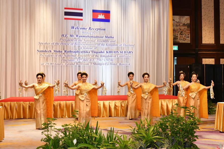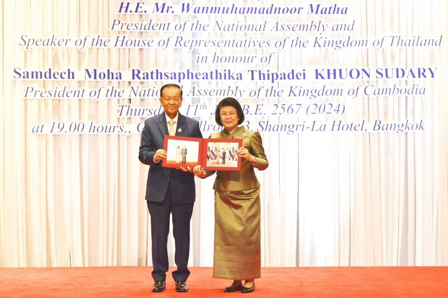 เมื่อวันพฤหัสบดีที่ 11 กรกฎาคม 2567 เวลา 19.00 นาฬิกา ณ ห้องแกรนด์บอลรูม 3 โรงแรมแชงกรี-ลา กรุงเทพฯ นายวันมูหะมัดนอร์ มะทา ประธานรัฐสภา พร้อมด้วยบุคคลสำคัญของรัฐสภา ประกอบด้วย นายพิเชษฐ์ เชื้อเมืองพาน รองประธานสภาผู้แทนราษฎร คนที่สอง ในฐานะผู้ติดตามเกียรติยศ นายณัฐชา บุญไชยอินสวัสดิ์ สมาชิกสภาผู้แทนราษฎร นายสุวัฒน์ จิราพันธุ์ สมาชิกวุฒิสภา ว่าที่ ร.ต.ต.อาพัทธ์ สุขะนันท์ เลขาธิการสภาผู้แทนราษฎร น.ส.สตีจิตร ไตรพิบูลย์สุข และนางจงเดือน สุทธิรัตน์ รองเลขาธิการสภาผู้แทนราษฎร ได้ร่วมเป็นเจ้าภาพงานเลี้ยงอาหารค่ำเพื่อเป็นเกียรติแก่สมเด็จมหารัฐสภาธิการธิบดี ควน โซะดารี (Samdech Moha Rathsapheathika Thipadei KHUON SUDARY) ประธานสภาแห่งชาติราชอาณาจักรกัมพูชา และคณะ ในโอกาสเดินทางมาเยือนประเทศไทยอย่างเป็นทางการในฐานะแขกของรัฐสภา ในการนี้ ประธานรัฐสภา ได้กล่าวสุนทรพจน์ต้อนรับ โดยได้กล่าวถึงความสัมพันธ์อันดีที่มีมาอย่างยาวนานระหว่างประเทศไทยกับราชอาณาจักรกัมพูชา และโอกาสในการยกระดับความร่วมมือระหว่างรัฐสภาของทั้งสองประเทศในอนาคต จากนั้น ประธานสภาแห่งชาติราชอาณาจักรกัมพูชา กล่าวตอบขอบคุณ และพร้อมที่จะให้การสนับสนุนความร่วมมือระหว่างกันให้เพิ่มพูนขึ้น และยินดีเป็นอย่างยิ่งที่รัฐสภาไทยให้การต้องรับอย่างอบอุ่น