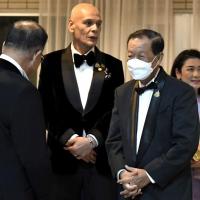 โอกาสนี้ นายเศรษฐา ทวีสิน นายกรัฐมนตรี นายวันมูหะมัดนอร์ มะทา ประธานรัฐสภา นางอโนชา ชีวิตโสภณ ประธานศาลฎีกา พร้อมด้วย คณะรัฐมนตรี นายจุมพล พันธ์สัมฤทธิ์ รองอัยการสูงสุด และนางจงเดือน สุทธิรัตน์ รองเลขาธิการสภาผู้แทนราษฎร เฝ้าฯ รับเสด็จ และร่วมชมการแสดง