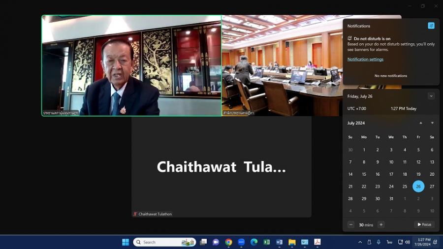 | วันศุกร์ที่ 26 กรกฎาคม 2567 เวลา 14.30 นาฬิกา ณ ห้องประชุมราชบุรีดิเรกฤทธิ์ ชั้น 3 อาคารศาลยุติธรรม ศาลฎีกา นายวันมูหะมัดนอร์ มะทา ประธานสภาผู้แทนราษฎร พร้อมด้วย นายชัยธวัช ตุลาธน ผู้นำฝ่ายค้านในสภาผู้แทนราษฎร เข้าร่วมประชุมคณะกรรมการสรรหากรรมการป้องกันและปราบปรามการทุจริตแห่งชาติ ครั้งที่ 2 ผ่านสื่ออิเล็กทรอนิกส์ (แทน พล.อ.บุณยวัจน์ เครือหงส์ กรรมการซึ่งพ้นจากตำแหน่งเนื่องจากมีอายุครบเจ็ดสิบปีบริบูรณ์) ตามมาตรา 13 วรรคสี่ โดยมี นางอโนชา ชีวิตโสภณ ประธานศาลฎีกา เป็นประธานการประชุม เพื่อพิจารณาเรื่องต่าง ๆ ดังนี้ 1. พิจารณาวินิจฉัยเกี่ยวกับคุณสมบัติและลักษณะต้องห้ามของผู้สมัครเข้ารับการสรรหาเป็นบุคคลผู้สมควรได้รับการแต่งตั้งเป็นกรรมการป้องกันและปราบปรามการทุจริตแห่งชาติ รวมทั้งประวัติและพฤติการณ์ทั่วไป โดยพิจารณาจากข้อมูลผลการตรวจสอบที่ได้รับจากหน่วยงานต่าง ๆ ที่เกี่ยวข้อง 2. พิจารณาแนวทางการแสดงความคิดเห็นในเรื่องที่เกี่ยวกับหน้าที่และอำนาจของคณะกรรมการป้องกันและปราบปรามการทุจริตแห่งชาติของผู้สมัครและหรือการสัมภาษณ์ผู้สมัคร 3. พิจารณาหลักเกณฑ์และวิธีการลงคะแนนเลือกบุคคลผู้สมควรได้รับการแต่งตั้งเป็นกรรมการป้องกันและปราบปรามการทุจริตแห่งชาติ (แทน พล.อ.บุณยวัจน์ เครือหงส์ กรรมการ ซึ่งพ้นจากตำแหน่งเนื่องจากมีอายุครบเจ็ดสิบปีบริบูรณ์)