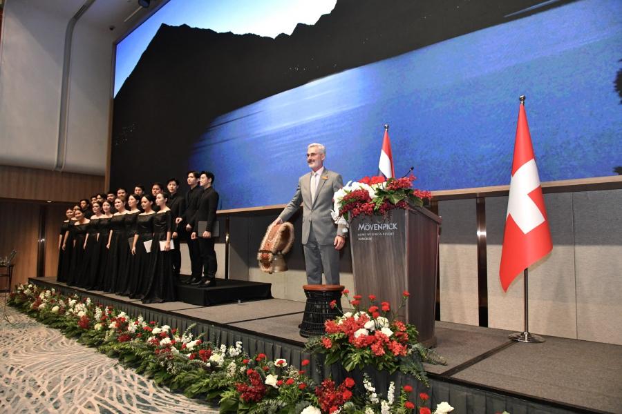 เมื่อวันพฤหัสบดีที่ 1 สิงหาคม 2567 เวลา 18.00 นาฬิกา ณ โรงแรมเมอเวนพิค บีดีเอ็มเอส เวลเนส รีสอร์ท กรุงเทพฯ นายวันมูหะมัดนอร์ มะทา ประธานรัฐสภา มอบหมายให้ นายมุข สุไลมาน เลขานุการประธานสภาผู้แทนราษฎร เป็นผู้แทนเข้าร่วมงานเลี้ยงเฉลิมฉลองวันชาติสมาพันธรัฐสวิส ตามคำเชิญของนายเปโดร สวาเลน (H.E. Mr. Pedro Zwahlen) เอกอัครราชทูตสมาพันธรัฐสวิสประจำประเทศไทย ซึ่งงานเฉลิมฉลองวันชาติสมาพันธรัฐสวิสจัดขึ้นเพื่อแสดงถึงความสามัคคีของชาวสวิส รวมถึงการพัฒนาความมือระหว่างหน่วยงานราชการกับหน่วยงานเอกชน รวมทั้งการดำเนินธุรกิจระหว่างไทยกับสมาพันธรัฐสวิส ที่ดำเนินด้วยดีตลอดมา