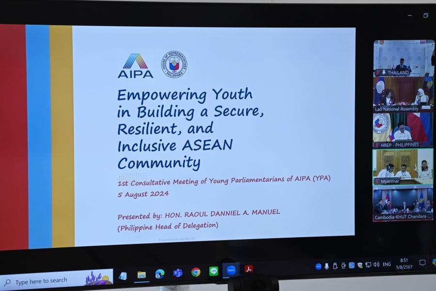 | สมาชิกรัฐสภาเข้าร่วมการประชุมเตรียมการสำหรับการประชุมคณะ กมธ.ยุวสมาชิกรัฐสภาอาเซียน ครั้งที่ 1 วันจันทร์ที่ 5 สิงหาคม 2567 เวลา 09.00 11.30 นาฬิกา ณ ห้องประชุมสำนักองค์การรัฐสภาระหว่างประเทศ ชั้น 3 อาคารรัฐสภา นายร่มธรรม ขำนุรักษ์ สมาชิกสภาผู้แทนราษฎร ในฐานะหัวหน้าคณะผู้แทนรัฐสภาไทย และนายชลัฐ รัชกิจประการ สมาชิกสภาผู้แทนราษฎร ในฐานะผู้แทนรัฐสภาไทย เข้าร่วมการประชุมเตรียมการสำหรับการประชุมคณะ กมธ.ยุวสมาชิกรัฐสภาอาเซียน ครั้งที่ 1 (the 1st Consultative Meeting of Young Parliamentarians of ASEAN Inter-Parliamentary Assembly) ผ่านสื่ออิเล็กทรอนิกส์ ซึ่งสภาแห่งชาติสาธารณรัฐประชาธิปไตยประชาชนลาวเป็นเจ้าภาพจัดการประชุม ภายใต้หัวข้อหลัก การส่งเสริมบทบาทของเยาวชนในการสร้างประชาคมอาเซียนที่มั่นคง ยืดหยุ่น และครอบคลุม (Empowering Youth in Building a Secure, Resilient, and Inclusive ASEAN Community) ซึ่งในการประชุมดังกล่าว นายร่มธรรม ขำนุรักษ์ ได้ร่วมอภิปรายแลกเปลี่ยนความคิดเห็นอย่างสร้างสรรค์ระหว่างรัฐสภาสมาชิกเกี่ยวกับแนวปฏิบัติที่ดีและข้อเสนอแนะที่เกี่ยวข้องกับหัวข้อการประชุม มีสาระสำคัญโดยสรุป ดังนี้ ประเทศไทยขอเน้นย้ำถึงความสำคัญของการเสริมศักยภาพเยาวชนเพื่อสร้างประชาคมอาเซียนที่มั่นคง ยืดหยุ่น และครอบคลุม โดยมุ่งพัฒนาด้านที่สำคัญ ได้แก่ การส่งเสริมการศึกษาแบบมีส่วนร่วมและการเรียนรู้ตลอดชีวิต การส่งเสริมการมีส่วนร่วมทางการเมืองของเยาวชน การส่งเสริมโอกาสทางเศรษฐกิจและการเป็นผู้ประกอบการ เสริมสร้างความสามัคคีและความยืดหยุ่นทางสังคม และการใช้ประโยชน์จากเทคโนโลยีและนวัตกรรม รวมทั้งการกระตุ้นให้เกิดความร่วมมือและความมุ่งมั่นเพื่อให้มั่นใจว่าเยาวชนจะเป็นผู้นำและนักสร้างสรรค์ เพื่อขับเคลื่อนอนาคตของอาเซียนให้ก้าวไปข้างหน้าอย่างยั่งยืน
