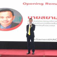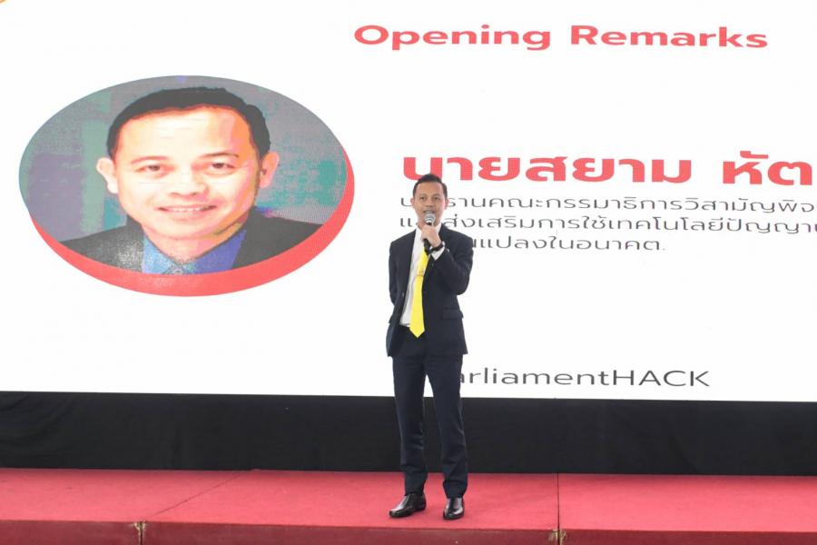 ทั้งนี้ ขอขอบคุณผู้ร่วมจัดโครงการในวันนี้ ไม่ว่าจะเป็น สมาคมปัญญาประดิษฐ์แห่งประเทศไทย สมาคมผู้ประกอบการเทคโนโลยีดิจิทัล สำนักงานส่งเสริมเศรษฐกิจดิจิทัล NECTEC Startup ไทย และขอบคุณทุกคนที่มาร่วมงานในวันนี้ การที่ทุกคนตัดสินใจเข้ามาร่วมโครงการในวันนี้ก็ถือว่าเป็นความสำเร็จแล้ว และขอให้ทุกคนสนุกกับการเข้าร่วมโครงการซึ่งจะมีการระดมความคิด เพื่อออกแบบแพลตฟอร์มด้านข้อมูลเปิดของรัฐสภาโดยใช้เทคโนโลยีในยุคปัญญาประดิษฐ์ และตนมีความตื่นเต้นมากในสิ่งที่ทุกคนจะนำเสนอในวันพรุ่งนี้