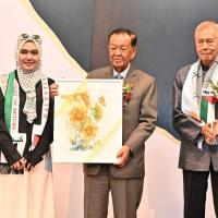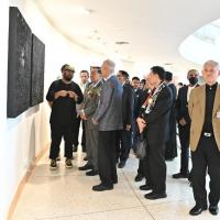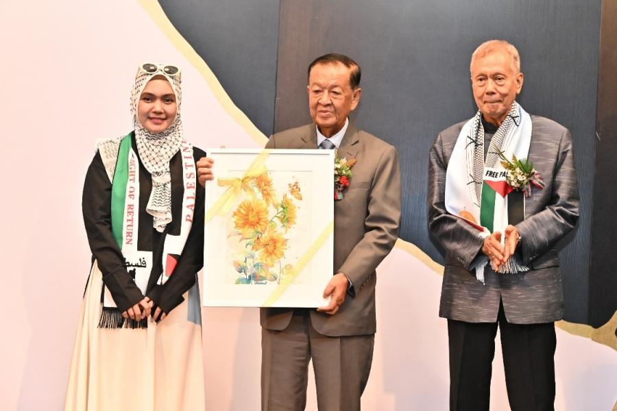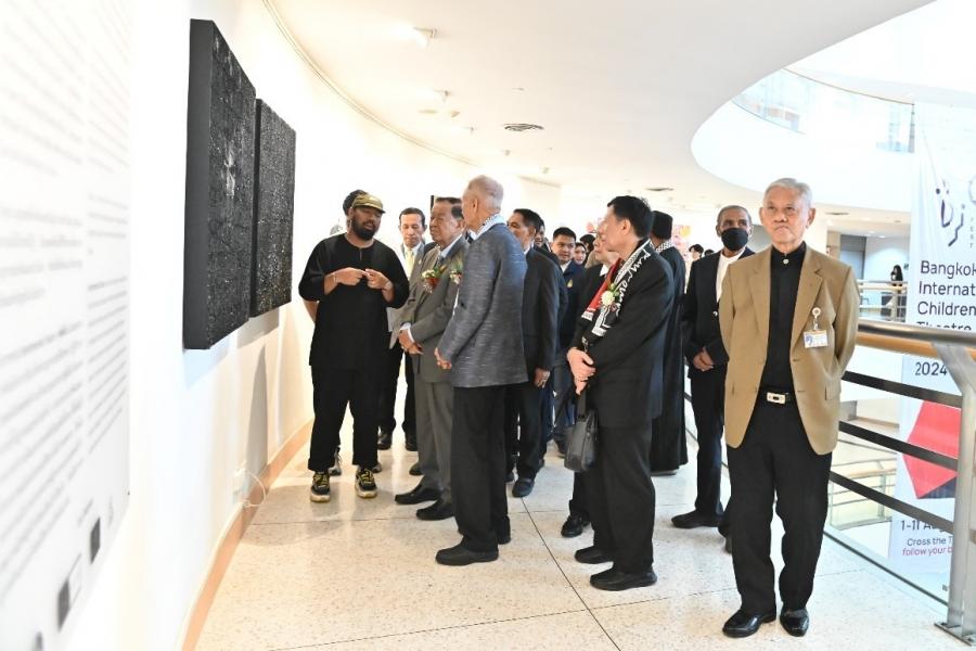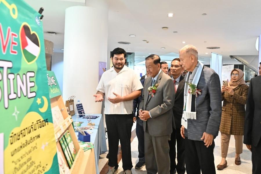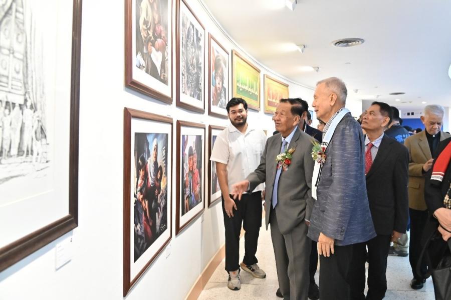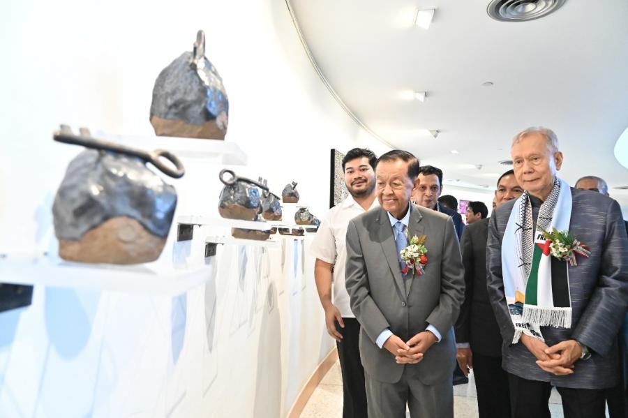 จากนั้น ประธานรัฐสภา เยี่ยมชมนิทรรศการงานศิลปกรรมเพื่อมนุษยธรรมและสันติภาพ ได้ร่วมกันจัดขึ้นในครั้งนี้ โดยองค์กรรณรงค์เพื่อความเป็นหนึ่งเดียวกับชาวปาเลสไตน์ประจำประเทศไทย The Palestine Solidanty Campaign Thailand (PSCT) ร่วมกับ ศูนย์สันติวิธีและธรรมาภิบาล สถาบันพระปกเกล้า ศูนย์มุสลิมศึกษาสถาบันเอเชียศึกษา จุฬาลงกรณ์มหาวิทยาลัย และสภาเครือข่ายช่วยเหลือด้านมนุษยธรรม สำนักจุฬาราชมนตรี จัดขึ้นระหว่างวันที่ 6 18 สิงหาคม 2567 ณ หอศิลปวัฒนธรรมแห่งกรุงเทพมหานคร มีวัตถุประสงค์เพื่อจัดแสดงงานศิลปกรรมและวัฒนธรรมรณรงค์ให้สังคมรับรู้ ตระหนักในพลังของการผลักดันให้เกิดสันติภาพเพื่อมนุษย์ธรรมต่อไป