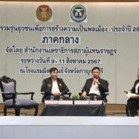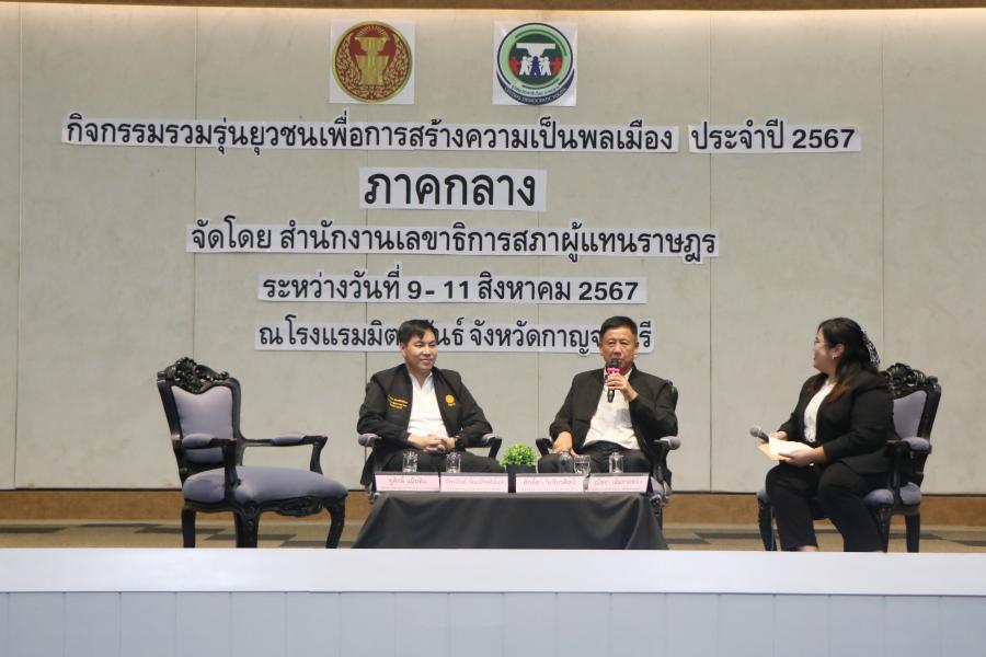 วันศุกร์ที่ 9 สิงหาคม 2567 เวลา 13.00 - 15.00 นาฬิกา ณ ห้องคอนเวนชั่น โรงแรมมิตรพันธ์ จังหวัดกาญจนบุรี นายศักดิ์ดา วิเชียรศิลป์ สมาชิกสภาผู้แทนราษฎรกาญจนบุรี เขต 4 พรรคเพื่อไทย ร่วมกับ นายอัครนันท์ กัณณ์กิตตินันท์ สมาชิกสภาผู้แทนราษฎรกาญจนบุรี เขต 1 พรรคเพื่อไทย เข้าร่วมเวทีเสวนา หัวข้อ สมาชิกสภาผู้แทนราษฎรกับการแก้ไขปัญหาประชาชน โดยมี นางสาวณัชชา เติมสายทอง ยุวชนประชาธิปไตย จังหวัดนครปฐม ปี 2560 เป็นผู้ดำเนินรายการเสวนา สำหรับเวทีเสวนา เริ่มต้นการเสวนาโดยสมาชิกสภาผู้แทนราษฎรทั้งสองท่านได้ร่วมพูดคุยถึงประวัติความเป็นมา และแรงบันดาลใจในการเข้ามาทำหน้าที่ผู้แทนของประชาชน ตลอดจน บทบาท อำนาจและหน้าที่ของสมาชิกสภาผู้แทนราษฎร ในด้านนิติบัญญัติ ซึ่งก็คือการออกกฎหมาย การทบทวนกฎหมาย การควบคุมการบริหารราชการแผ่นดิน การนำปัญหาของประชาชนในพื้นที่มาสู่รัฐสภา เพื่อหาหนทางแก้ไขปัญหา ทั้งนี้ หน้าที่ของสมาชิกสภาผู้แทนราษฎร ยังต้องมีความเกี่ยวพันกับความคาดหวังของประชาชนในพื้นที่ ที่ต้องการให้ช่วยแก้ไขปัญหาจิปาถะต่าง ๆ แม้ว่าปัญหานั้นจะไม่ได้อยู่ในอำนาจหน้าที่ของสมาชิกสภาผู้แทนราษฎร จึงต้องทำหน้าที่ในการเป็นตัวกลางประสานงานระหว่างประชาชนที่มีปัญหากับหน่วยงานที่รับผิดชอบดูแลโดยตรงอีกด้วย ซึ่งตลอดช่วงของการสัมมนาได้มีการเปิดโอกาสให้กลุ่มเป้าหมายได้ซักถามและแลกเปลี่ยนความคิดเห็น พร้อมกับแจกรางวัล โดยมีกลุ่มเป้าหมายร่วมแลกเปลี่ยนความเห็นในประเด็นต่าง ๆ เป็นจำนวนมาก โอกาสนี้ นายปกาสิต จำเรือง ผู้อำนวยการสำนักประชาสัมพันธ์ สำนักงานเลขาธิการสภาผู้แทนราษฎร ได้มอบของที่ระลึกให้แก่ผู้ร่วมเสวนา สำหรับกิจกรรมรวมรุ่นยุวชนฯ ในปีนี้ สำนักงานฯ ได้กำหนดจัดกิจกรรมรวมรุ่นยุวชนฯ ภาคกลาง ณ จังหวัดกาญจนบุรี ในระหว่างวันที่ 9 11 สิงหาคม 2567 โดยมีกลุ่มเป้าหมายเข้าร่วมกิจกรรมฯ จำนวนทั้งสิ้น 200 คน ประกอบด้วย คณะกรรมการยุวชนประชาธิปไตย ประจำปี 2566 ทั้ง 4 ภูมิภาค และยุวชนประชาธิปไตย ตั้งแต่ปี 2545 ถึงปัจจุบัน |