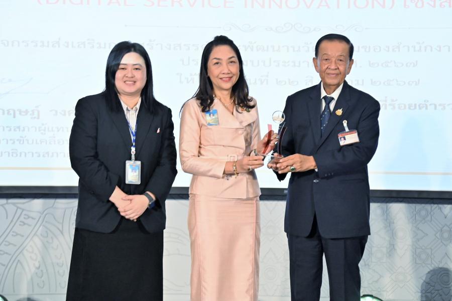 เสนอโดย สำนักรายงานการประชุมและชวเลข ร่วมกับ สำนักสารสนเทศ ประเภท นวัตกรรมการบริการดิจิทัล (Digital Service Innovation) เชิงสร้างสรรค์ ระดับดีเด่น ได้แก่ 1. ผลงานเรื่อง เอกสารข่าวรัฐสภาภาษาอาหรับฉบับดิจิทัล เสนอโดย นายชูชาติ พุฒเพ็ง นักวิเทศสัมพันธ์เชี่ยวชาญ กลุ่มงานภาษาสเปน เยอรมัน และอาหรับ สำนักภาษาต่างประเทศ
