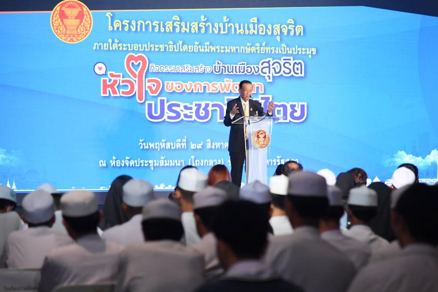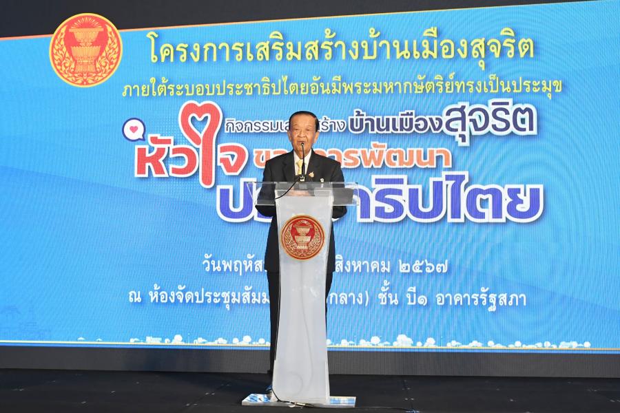 วันพฤหัสบดีที่ 29 สิงหาคม 2567 เวลา 11.15 นาฬิกา ณ ห้องประชุมสัมมนา (โถงกลาง) ชั้น B1 อาคารรัฐสภา นายวันมูหะมัดนอร์ มะทา ประธานรัฐสภา กล่าวให้โอวาทต่อเยาวชนที่เข้าร่วมโครงการเสริมสร้างบ้านเมืองสุจริตภายใต้ระบอบประชาธิปไตยอันมีพระมหากษัตริย์ทรงเป็นประมุขประจำปีงบประมาณ พ.ศ. 2567 กิจกรรมเสริมสร้างบ้านเมืองสุจริต : หัวใจของการพัฒนาประชาธิปไตย โดยมี นายคัมภีร์ ดิษฐากรณ์ โฆษกประธานสภาผู้แทนราษฎร พร้อมด้วย นายธงชาติ รัตนวิชา ผู้ช่วยเลขานุการประธานสภาผู้แทนราษฎร ผู้บริหารสำนักงานเลขาธิการสภาผู้แทนราษฎร ผู้นำศาสนา คณาจารย์ และนักศึกษา ร่วมรับฟัง โอกาสนี้ นายวันมูหะมัดนอร์ มะทา ประธานรัฐสภา กล่าวให้โอวาทใจความว่า โครงการเสริมสร้างบ้านเมืองสุจริตฯ เป็นโครงการที่มีการสัมมนาอย่างต่อเนื่อง เป็นประโยชน์อย่างยิ่งต่อการส่งเสริมการสร้างความรู้และการมีส่วนร่วมของเยาวชน นักเรียน นิสิตนักศึกษา ที่ตระหนักถึงสิทธิ หน้าที่ ความรับผิดชอบความเป็นพลเมืองในระบอบประชาธิปไตยอันมีพระมหากษัตริย์ทรงเป็นประมุข ดังนั้น อำนาจอธิปไตย คือ อำนาจสูงสุดในการปกครองประเทศ ซึ่งถือว่าเป็นองค์ประกอบที่สำคัญของการปกครอง โดยในวันนี้ (29 ส.ค. 67) มีการประชุมร่วมกันของรัฐสภา เพื่อพิจารณาร่างกรอบความตกลงว่าด้วยความเป็นหุ้นส่วนและความร่วมมือรอบด้านระหว่างสหภาพยุโรปและรัฐสมาชิกฝ่ายหนึ่งกับราชอาณาจักรไทยอีกฝ่ายหนึ่ง อย่างไรก็ตาม อำนาจฝ่ายนิติบัญญัติ ฝ่ายบริหาร และฝ่ายตุลาการ เป็น 3 เสาหลักของการปกครองระบอบประชาธิปไตย เยาวชนเป็นผู้ที่มีความสำคัญคือต้องเป็นผู้ที่จะรักษาประชาธิปไตยให้อยู่รอดปลอดภัยแล้วนำประเทศไทยสู่ความเจริญ รุ่งเรือง ดังนั้น ประเทศไทยอยู่ในมือของเยาวชนทุกคนนั่นเอง นิสิต นักศึกษาที่เข้าร่วมกิจกรรมในครั้งนี้ ในอนาคตอาจจะเป็น สส. รัฐมนตรี หรือเป็นฝ่ายตุลาการ การอบรมดังกล่าวเป็นการส่งเสริมประชาธิปไตยให้เจริญงอกงาม ดังนั้น บ้านเมืองเจริญได้ต้องมีเศรษฐกิจที่ดี มีผู้บริหารประเทศมีความคิดริเริ่มสร้างสรรค์ เป็นคนดี มีความซื่อสัตย์สุจริต นอกจากนี้ ยังมีภัยด้านยาเสพติดที่เป็นอันตรายต่อสุขภาพจะเห็นได้ว่าคดีที่เกิดขึ้นจากอาชญากรรมยาเสพติดนักโทษที่อยู่ในเรือนจำประมาณ 3 แสนคน ร้อยละ 70 มาจากยาเสพติดซึ่งเป็นการทำลายอนาคตของประเทศ โครงการเสริมสร้างบ้านเมืองสุจริตฯ จึงจัดให้มีการเสวนา เรื่อง หลักธรรมทางศาสนากับการพัฒนาประชาธิปไตย ตนรู้สึกดีใจที่โครงการดังกล่าวได้นำเรื่องของ 3 ศาสนา มาเสวนาในครั้งนี้ด้วย เนื