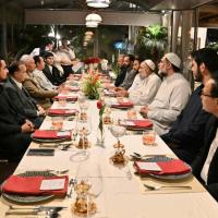 | เมื่อวันที่ 3 กันยายน 2567 เวลา 19.00 นาฬิกา ณ Fat Lamb BKK พระราม 9 เขตสวนหลวง กรุงเทพฯ นายดำรง พุฒตาล ที่ปรึกษาประธานรัฐสภา (กิตติมศักดิ์) นายอารีเพ็ญ อุตรสินธุ์ ที่ปรึกษาประธานสภาผู้แทนราษฎร และนายมุข สุไลมาน เลขานุการประธานสภาผู้แทนราษฎร เข้าร่วมงานเลี้ยงอาหารค่ำ โดย นายวันมูหะมัดนอร์ มะทา ประธานรัฐสภา เป็นเจ้าภาพ เพื่อเป็นเกียรติแก่อยาตุลลอฮ์ เชคญะวาด มัรวี ที่ปรึกษาฝ่ายศาสนาประจำผู้นำสูงสุดแห่งสาธารณรัฐอิสลามแห่งอิหร่าน และคณะ คณะ ในโอกาสเยือนประเทศไทย และเข้าเยี่ยมคารวะประธานรัฐสภา |