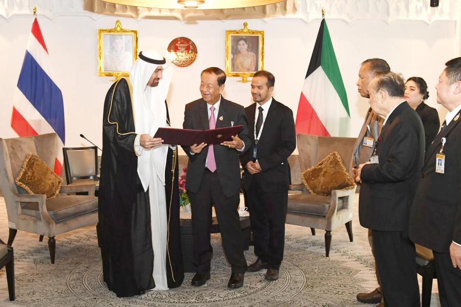 ประธานรัฐสภา กล่าวต้อนรับเอกอัครราชทูตฯ และกล่าวถึงความสัมพันธ์ไทย - คูเวต ว่ามีความสัมพันธ์อันดีระหว่างกันมาโดยตลอดในทุกระดับ ทั้งในระดับรัฐบาล รัฐสภา และประชาชน โดยเชค เศาะบาฮ์ อดีตเจ้าผู้ครองรัฐคูเวต ได้เคยเสด็จฯ เยือนไทย เมื่อปี 2549 เพื่อเข้าร่วมพิธีฉลองสิริราชสมบัติ 60 ปี พระบาทสมเด็จพระบรมชนกาธิเบศร มหาภูมิพลอดุลยเดชมหาราช บรมนาถบพิตร
