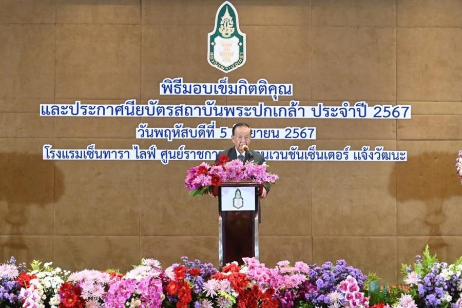 วันพฤหัสบดีที่ 5 กันยายน 2567 เวลา 13.00 นาฬิกา ณ ห้องวายุภักษ์ 5 - 7 ชั้น 5 ศูนย์ประชุมวายุภักษ์ โรงแรมเซ็นทราศูนย์ราชการเฉลิมพระเกียรติ ถ.แจ้งวัฒนะ กรุงเทพฯ นายวันมูหะมัดนอร์ มะทา ประธานรัฐสภา ในฐานะประธานสภาสถาบันพระปกเกล้า เป็นประธานในพิธีมอบเข็มกิตติคุณและประกาศนียบัตรสถาบันพระปกเกล้า ประจำปี 2567 ให้แก่ผู้สำเร็จการอบรม หลักสูตรต่าง ๆ ได้แก่ 1. หลักสูตรประกาศนียบัตรธรรมาภิบาลของผู้บริหารระดับกลาง รุ่นที่ 25 2. หลักสูตรประกาศนียบัตรกฎหมายท้องถิ่น รุ่นที่ 12 3. หลักสูตรประกาศนียบัตรธรรมาภิบาลสำหรับผู้บริหารสถานศึกษาสำนักงานการศึกษาขั้นพื้นฐาน (สพฐ.) (โรงเรียนสุจริต) รุ่นที่ 9 4. หลักสูตรประกาศนียบัตรทางการแพทย์สำหรับนักบริหารระดับสูง รุ่นที่ 10 5. หลักสูตรประกาศนียบัตรไทยกับประชาคมอาเซียนในเศรษฐกิจการเมืองโลก รุ่นที่ 12 6. หลักสูตรประกาศนียบัตรผู้นำยุคใหม่ในระบอบประชาธิปไตย รุ่นที่ 13 7. หลักสูตรประกาศนียบัตรการเสริมสร้างสังคมสันติสุขในจังหวัดชายแดนใต้ รุ่นที่ 6