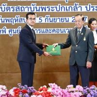 ในโอกาสนี้ นายวันมูหะมัดนอร์ มะทา ประธานรัฐสภา ในฐานะประธานสภาสถาบันพระปกเกล้า กล่าวแสดงความยินดี แก่ผู้ได้รับเข็มกิตติคุณ และประกาศนียบัตรสถาบันพระปกเกล้า ว่ารู้สึกเป็นเกียรติและมีความยินดี ที่มาเป็นประธานในพิธีมอบเข็มกิตติคุณสถาบันพระปกเกล้า ให้แก่ผู้ทำคุณประโยชน์ต่อสถาบันพระปกเกล้า และมอบประกาศนียบัตรสถาบันพระปกเกล้า ให้แก่ผู้สำเร็จการศึกษาในหลักสูตรต่าง ๆ ในวันนี้ ขอแสดงความยินดี และขอชื่นชมทุกท่านด้วยใจจริง ทั้งผู้ที่ได้ทุ่มเททำคุณประโยชน์ต่อสถาบันพระปกเกล้า และผู้ที่มุ่งมั่นในการศึกษาอบรมในหลักสูตรต่าง ๆ จนประสบความสำเร็จโดยเฉพาะท่านที่ผ่านหลักสูตรเหล่านั้นมา แม้จะมีที่มาแตกต่างกัน ทั้งจากภาคราชการ ภาคเอกชนองค์กรอิสระ หรือภาคประชาสังคม แต่มีสิ่งที่ท่านมีร่วมกันคือ การมีส่วนช่วยสนับสนุนพัฒนาการทางการเมือง และธำรงรักษาไว้ ซึ่งการปกครองในระบอบประชาธิปไตย อันมีพระมหากษัตริย์ทรงเป็นประมุข