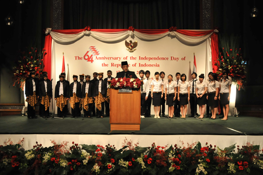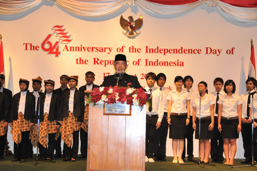 | วันจันทร์ที่ ๑๗ สิงหาคม ๒๕๕๒ เวลา ๑๘.๓๐ นาฬิกา ณ ห้องแกรนด์บอลรูม โรงแรมแกรนด์ไฮเอท เอราวัณ กรุงเทพฯ นายชัย ชิดชอบ ประธานรัฐสภา และประธานสภาผู้แทนราษฎร เข้าร่วมงานเลี้ยงรับรอง เนื่องในโอกาสครบรอบ ๖๔ ปี วันประกาศอิสรภาพสาธารณรัฐอินโดนีเซีย |